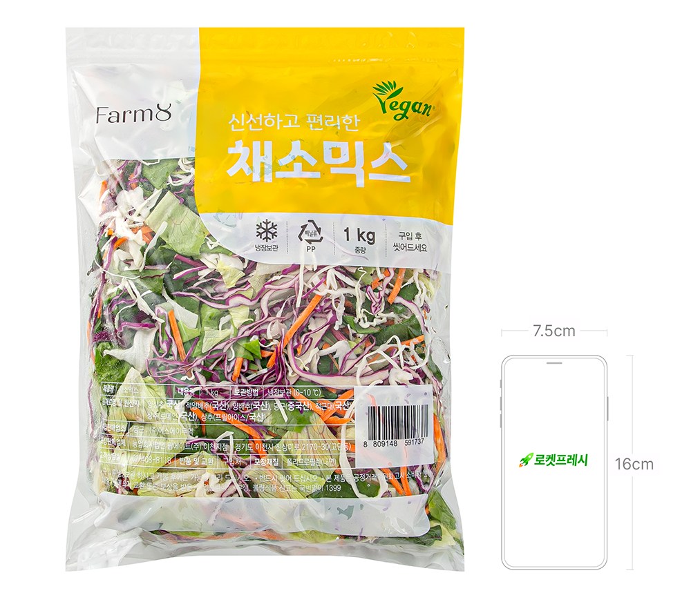 스마트팜 기술로 안전한 먹거리를 생산하는 브랜드. 팜에이트의 채소 믹스를 소개할게요. 쌉싸름한 맛이 매력적인 적근대를 중심으로, 이름처럼 풍성한 잎을 자랑하는 프릴아이스. 아삭한 식감의 양상추 등으로 알차게 구성되어 있답니다. 넉넉한 양으로 구성되어 있으니, 취향에 맞는 드레싱만 준비해 간편하게 즐겨보세요.