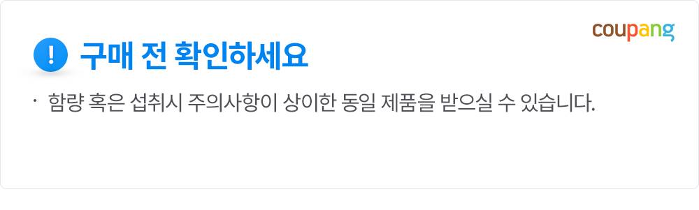 | 교환/반품 신청 기준일 | ㆍ단순변심에 의한 로켓배송 상품의 교환/반품은 제품 수령 후 30일 이내까지, 교환/반품 제한사항에 해당하지 않는 경우에만 가능 (교환/반품 비용 고객부담) ㆍ상품의 내용이 표시·광고의 내용과 다른 경우에는 상품을 수령한 날부터 3개월 이내, 그 사실을 안 날 또는 알 수 있었던 날부터 |