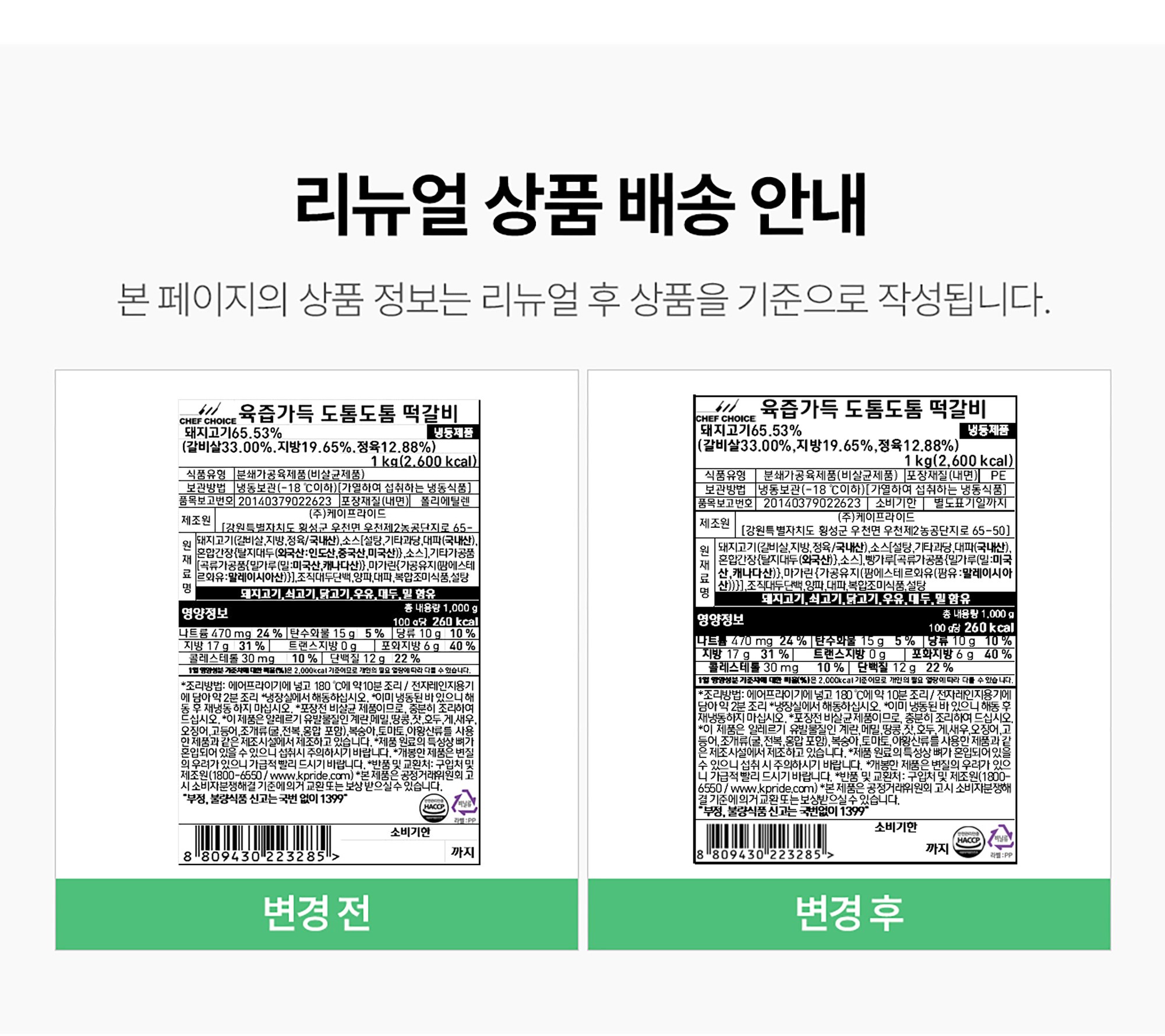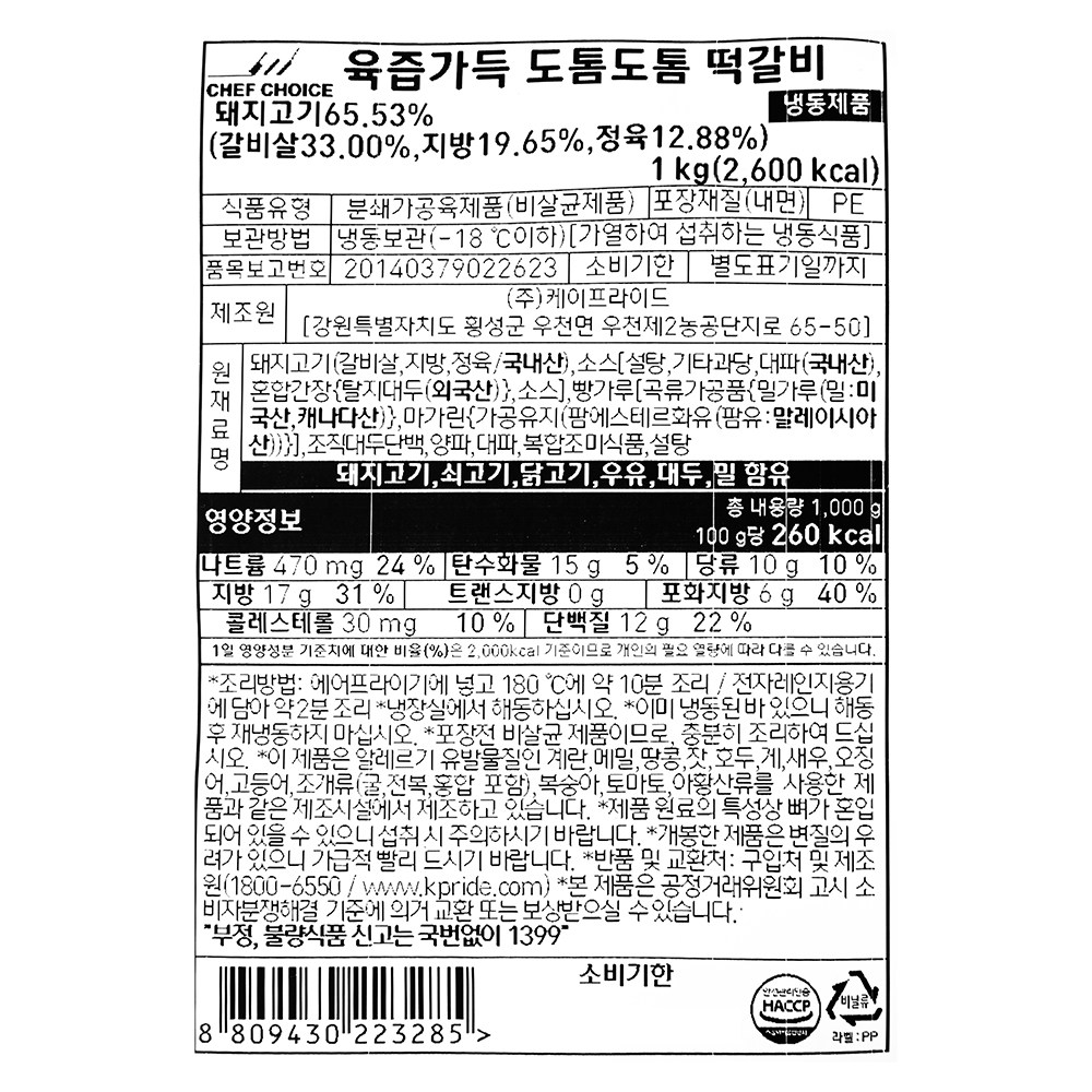| 제품명 | 육즙가득 도톰도톰 떡갈비 | 식품의 유형 | 컨텐츠 참조 |