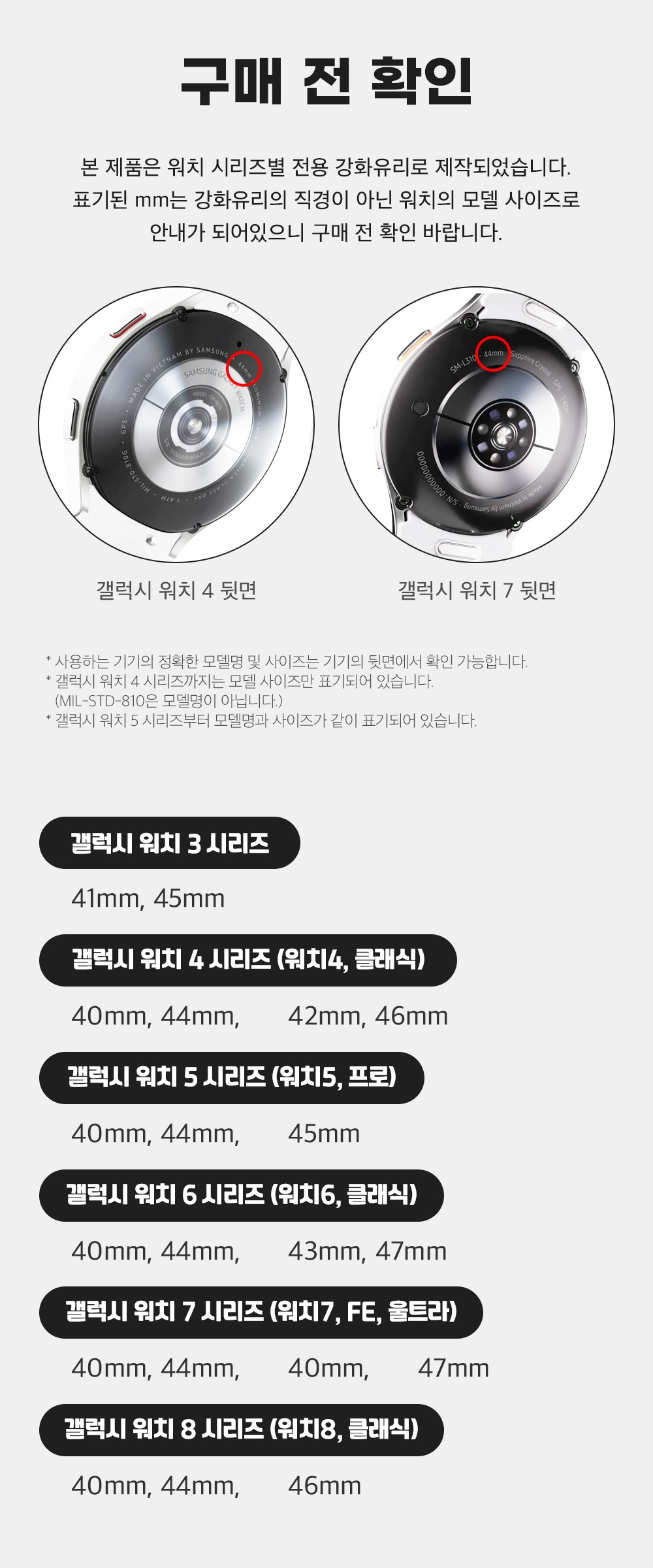 | 품명 및 모델명 | 갤럭시워치 강화유리 2매입 | 인증/허가 사항 | 본품: 해당없음 | 클리너: EB19-01-0652 |