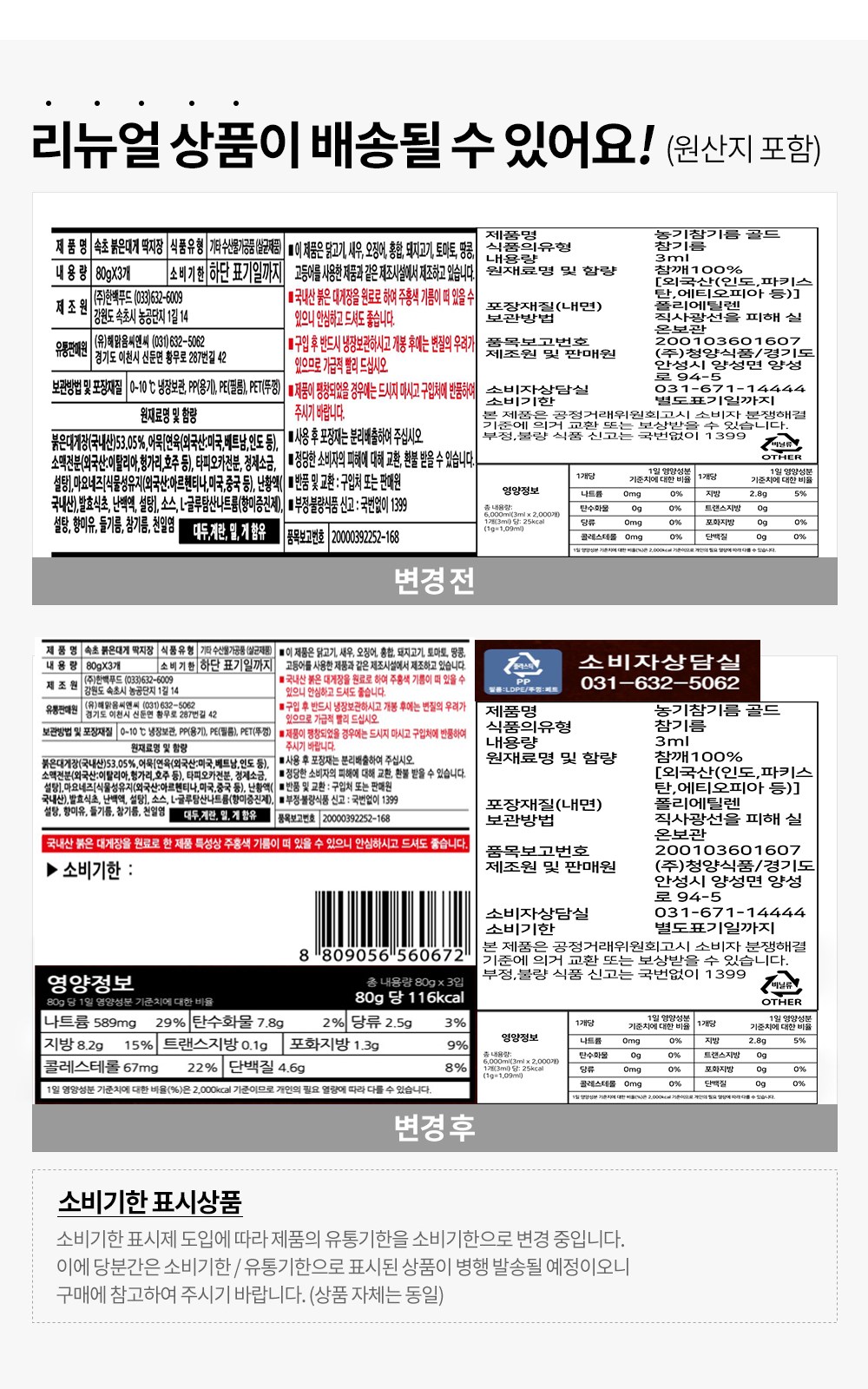 | 생산자 및 소재지 | 컨텐츠 참조 | 소비기한 또는 품질유지기한 | 소비기한(또는 유통기한) : 2026년 04월 08일 이거나 그 이후인 상품 |