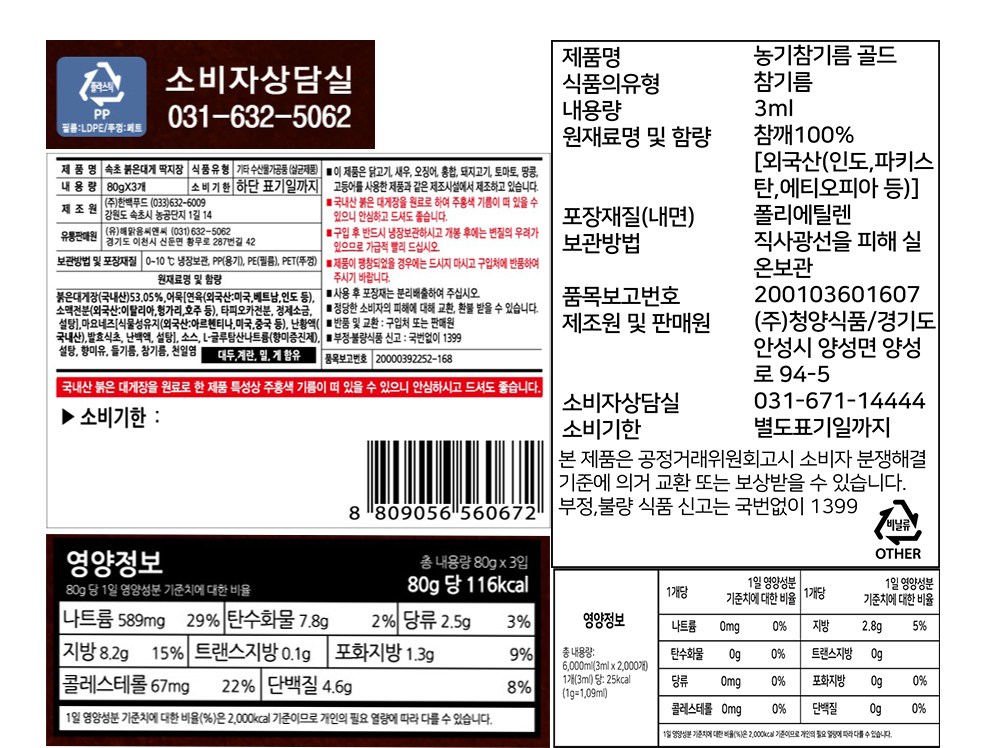 | 제품명 | 컨텐츠 참조 | 식품의 유형 | 컨텐츠 참조 |