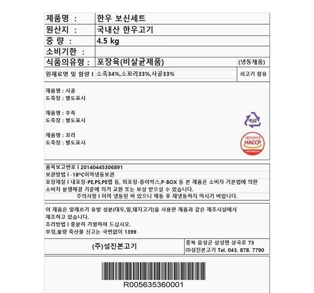 | - 한우 우족, 사골, 꼬리반골로 구성 | |