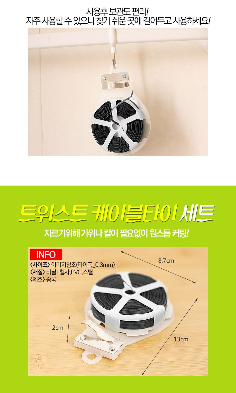 | 품명 및 모델명 | 리뉴얼 전 : 와이드 타이 / 리뉴얼 후 : 모나코올리브 트위스트 케이블타이 세트, 블랙, 1세트 | 인증/허가 사항 | 해당없음 |