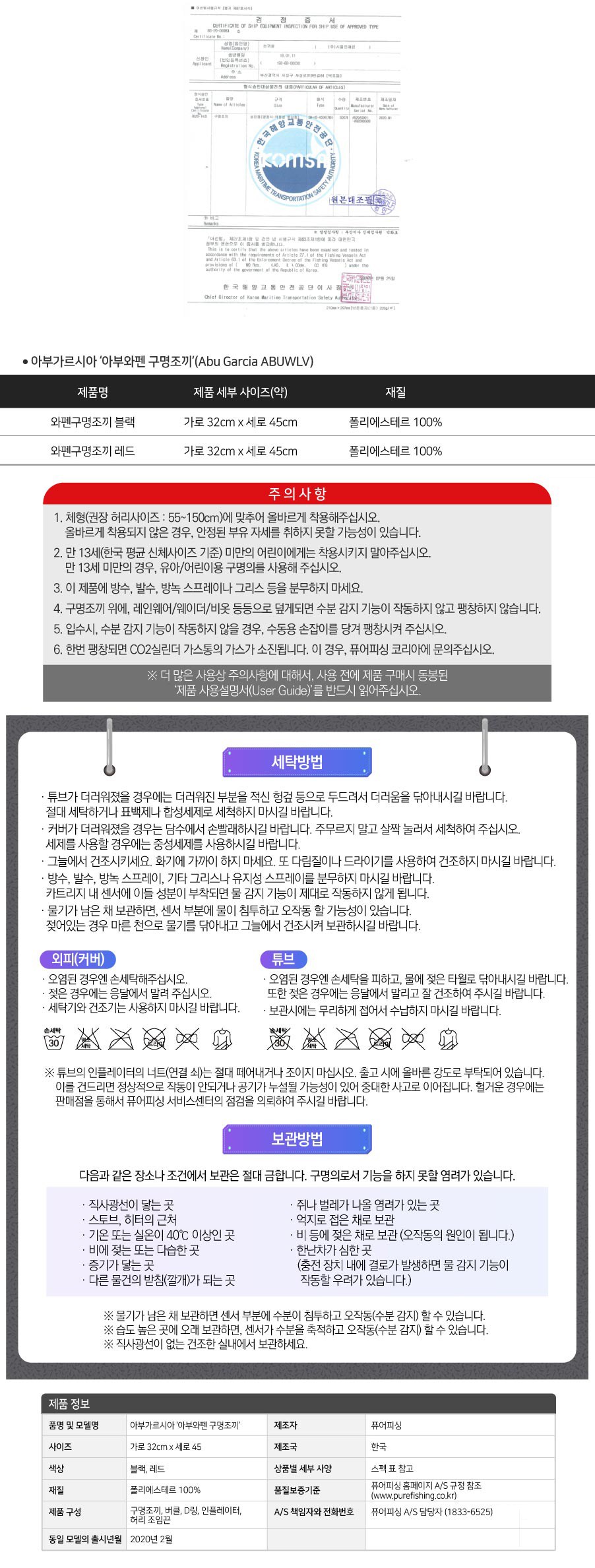 | 품명 및 모델명 | 아부가르시아/ 와펜 구명조끼 블랙 자동팽창식구명조끼 | KC 인증정보 | 해당없음 |
