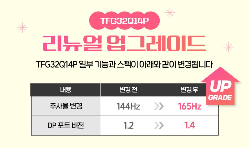 | 품명 및 모델명 | 한성컴퓨터 TFG32Q14P 게이밍 모니터 | KC 인증정보 | 본품:R-R-ANM-TFG3217AD16, XU101557-20008A/어댑터:HU10142-18166A |