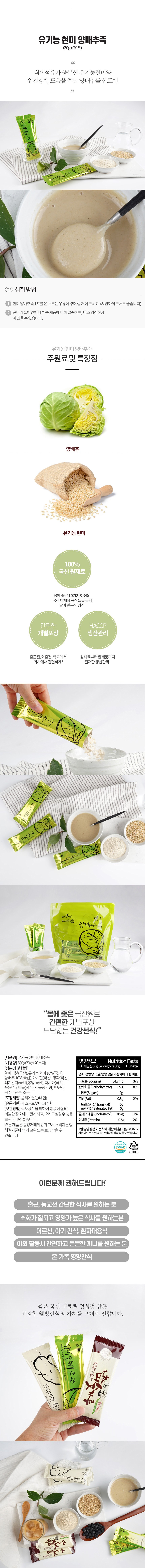 | 제품명 | 유기농 현미 양배추죽 | 식품의 유형 | 즉석섭취식품 |