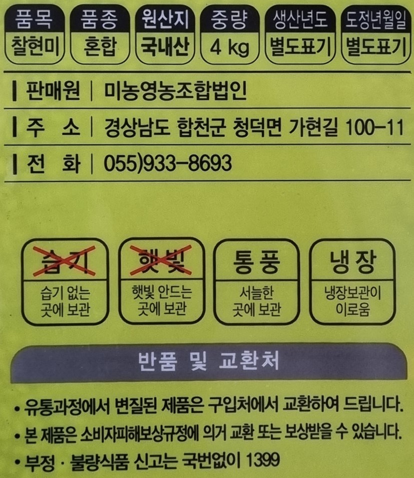- 쌀 종류: 현미