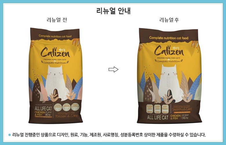 | 품명 및 모델명 | 캣티즌 | 인증/허가 사항 | 사료관리법에 따른 성분등록번호 : 컨텐츠 참조 |