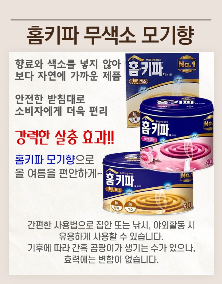 | 품명 및 모델명 | 홈키파 모기향 10P | 인증/허가 사항 | 제품상세설명 참조 |