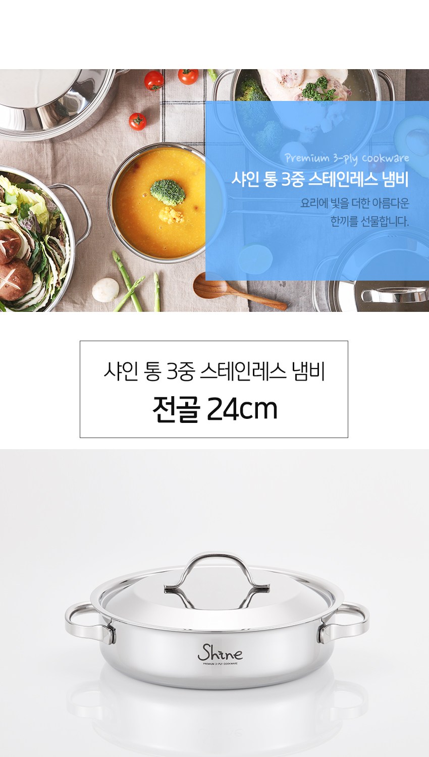 | 품명 및 모델명 | 한일_샤인통3중스텐냄비(전골)_24cm | 재질 | 컨텐츠 참조 |