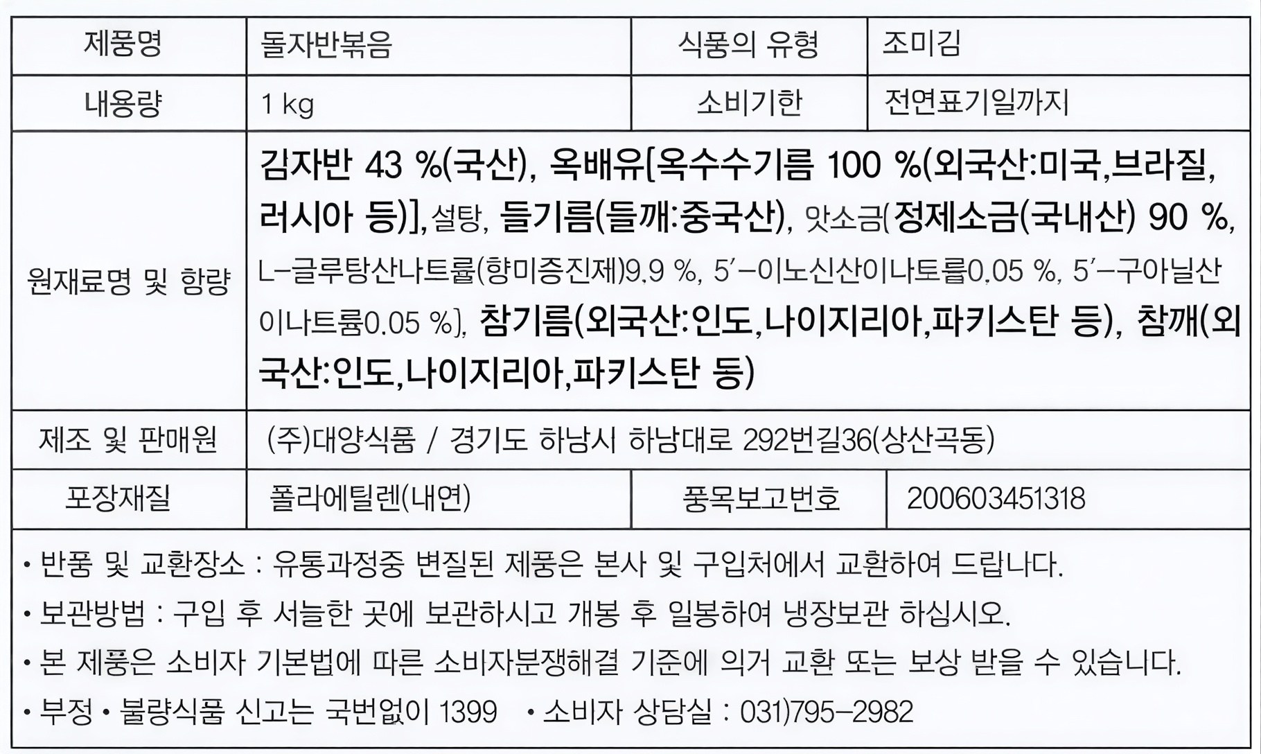 | 생산자 및 소재지 | 컨텐츠 참조 | 제조연월일, 소비기한 또는 품질유지기한 | 소비기한(또는 유통기한) : 2026년 10월 01일 이거나 그 이후인 상품 제조년월일 : 2025년 10월 02일 이후인 제조상품 |