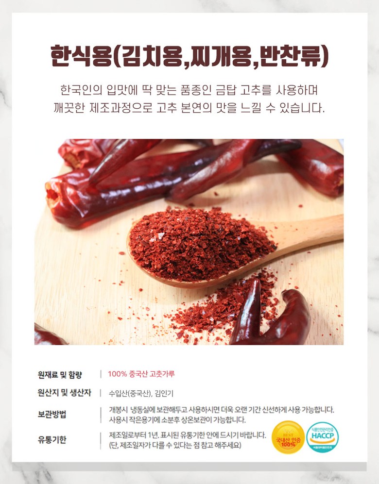 | 제품명 | 도깨비방앗간 고춧가루 | 식품의 유형 | 중국산 고춧가루 500g |