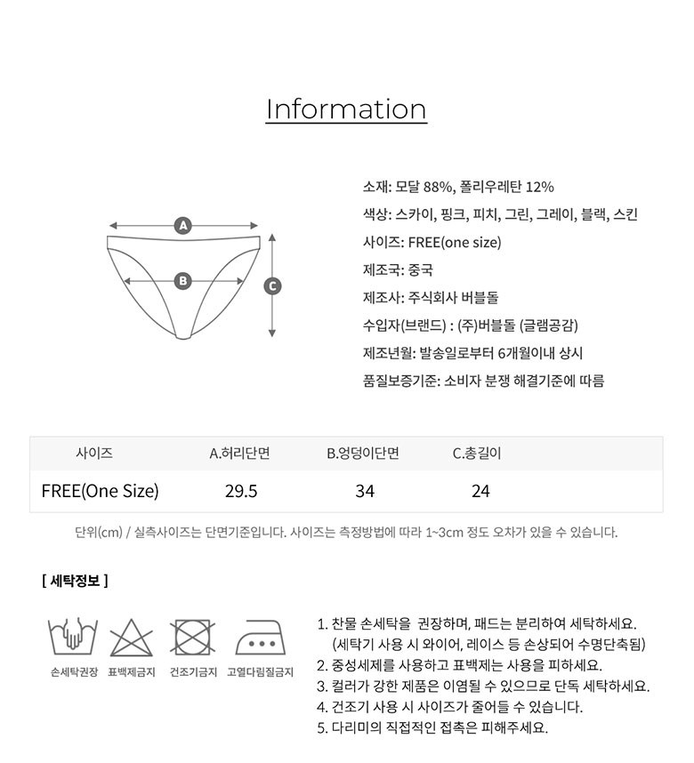 | 제조국 | 중국 | 세탁방법 및 취급시 주의사항 | 컨텐츠 참조 |