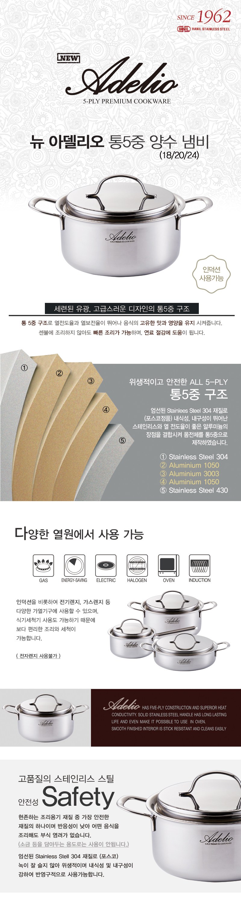 | 품명 및 모델명 | 한일_아델리오통5중냄비20양수+24양수 | 재질 | 스테인리스 스틸 |
