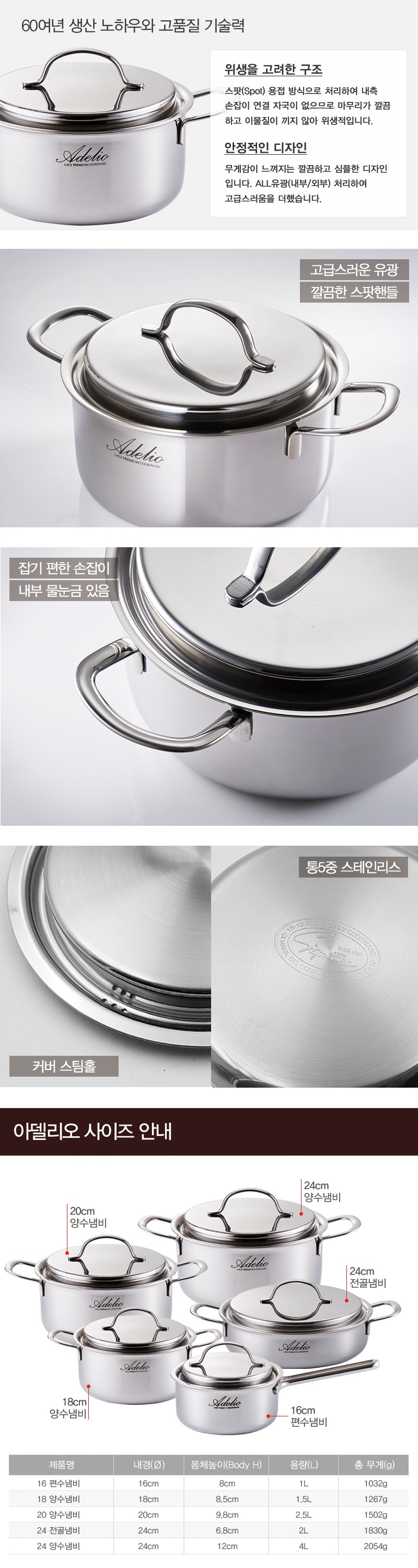 | 구성품 | 한일_아델리오통5중냄비2종set_20양수+24양수 | 크기 | 컨텐츠 참조 |