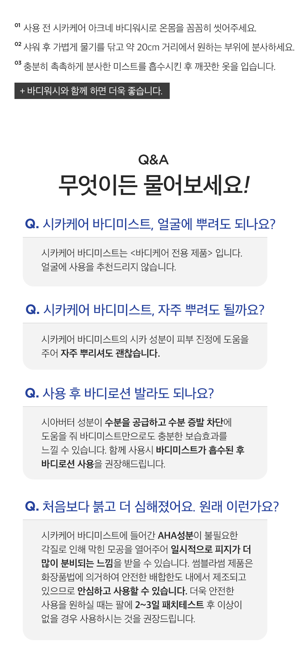 - 가격, 판매자, 교환/환불 및 배송 등 해당 상품 자체와 관련 없는 문의는 고객센터 내 1:1 문의하기를 이용해주세요.