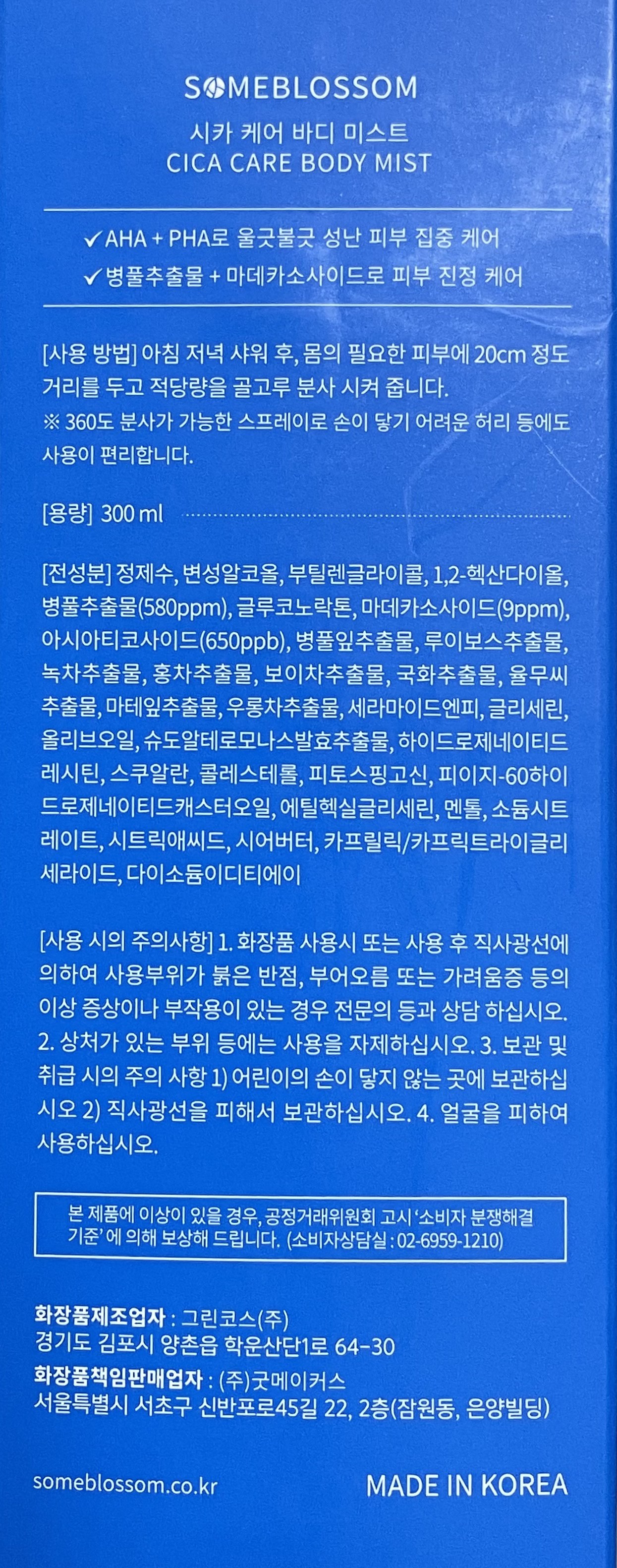 | 화장품제조업자, 화장품책임판매업자 및 맞춤형화장품판매업자 | 그린코스(주) / (주)굿메이커스 | 제조국 | 대한민국 |