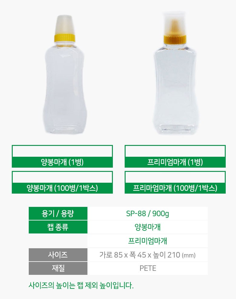| 품명 및 모델명 | 900g 꿀페트 양봉마개, SP-88양봉 2p | 인증/허가 사항 | 해당없음 |