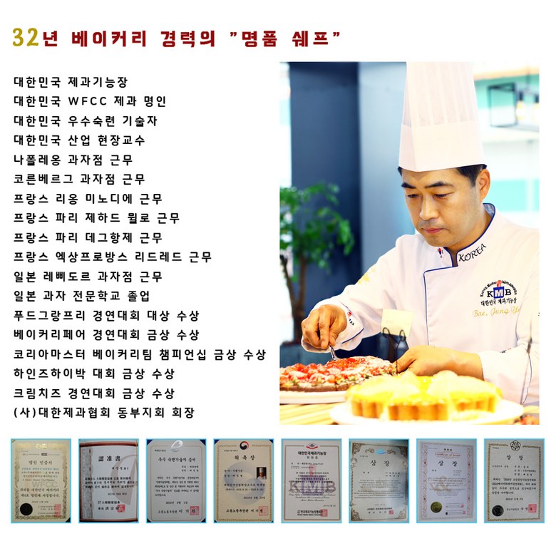 대한민국 제과기능장, 대한민국 우수숙련기술인, 대한민국 베이커리 제4호 명인,