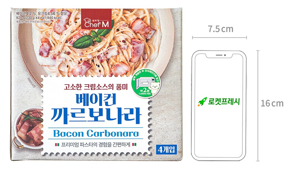 | 제품명 | 베이컨까르보나라 파스타 | 식품의 유형 | 즉석조리식품 |