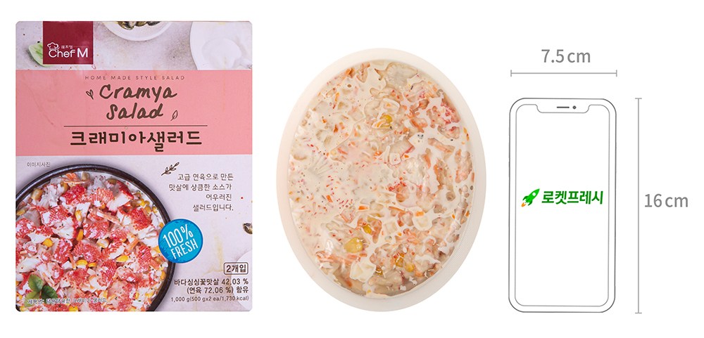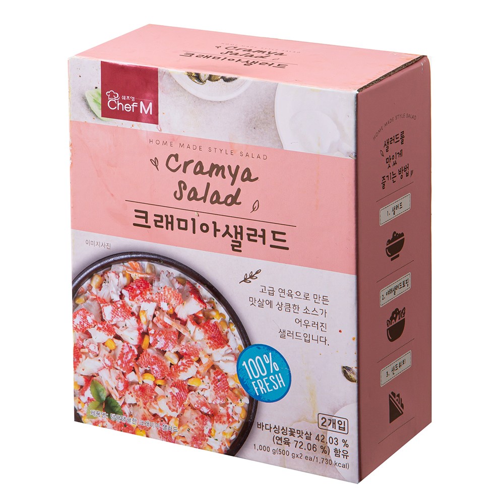 부드러운 꽃맛살이 듬뿍. 담백하고 고소한 맛이 좋은 쉐프엠의 크래미아 샐러드입니다. 입안 가득 꽃 맛살이 탱글탱글하게 씹히며 담백한 감칠맛을 선사해요. 먹음직스러운 색감과 함께 식감, 맛 그 어떤 것도 빠지지 않는 별미 샐러드지요. 그대로 먹어도 맛있지만 샌드위치를 만들 때 활용하셔도 참 좋은데요. 식빵이나 바게트 사이에 양상추 등의 채소와 함께 넣어 즐겨보세요. 온 가족이 맛있게 즐길 수 있는 간식이 될 거예요.