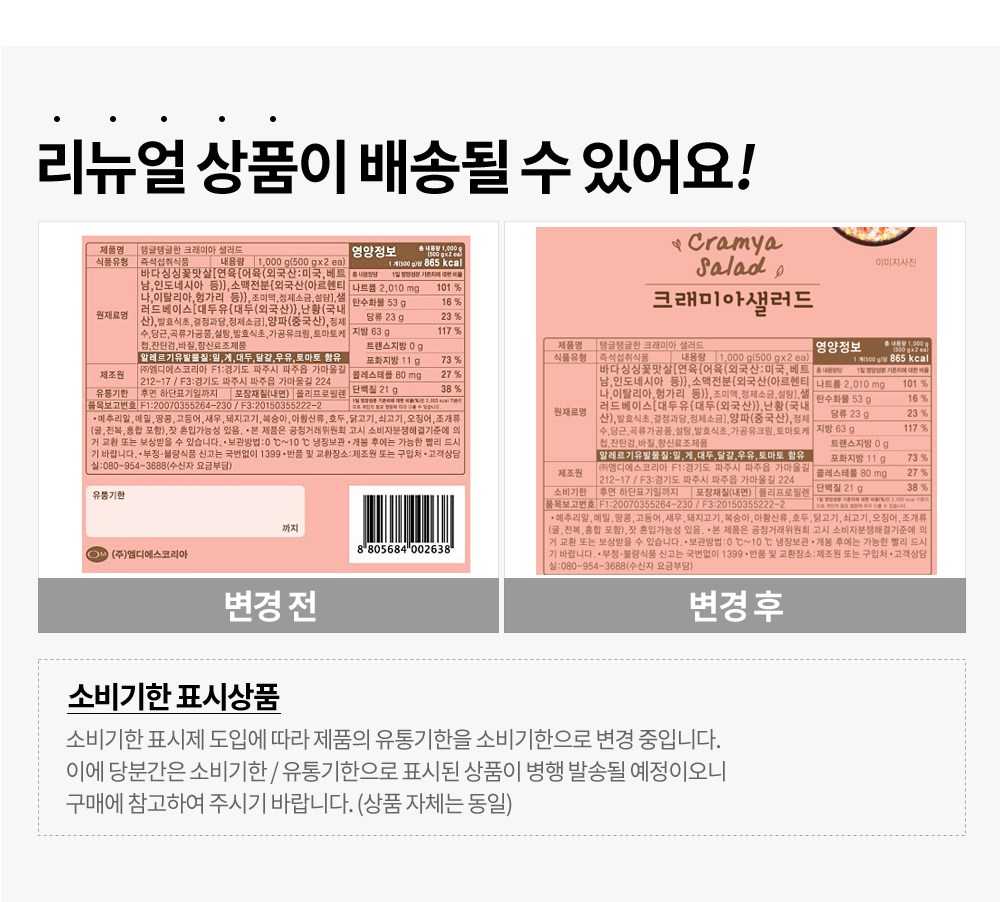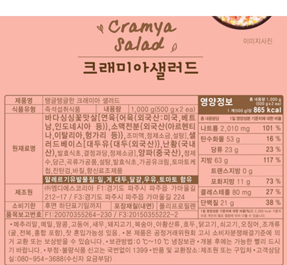 | 제품명 | 탱글탱글한 크래미아 샐러드 | 식품의 유형 | 즉석섭취식품 |