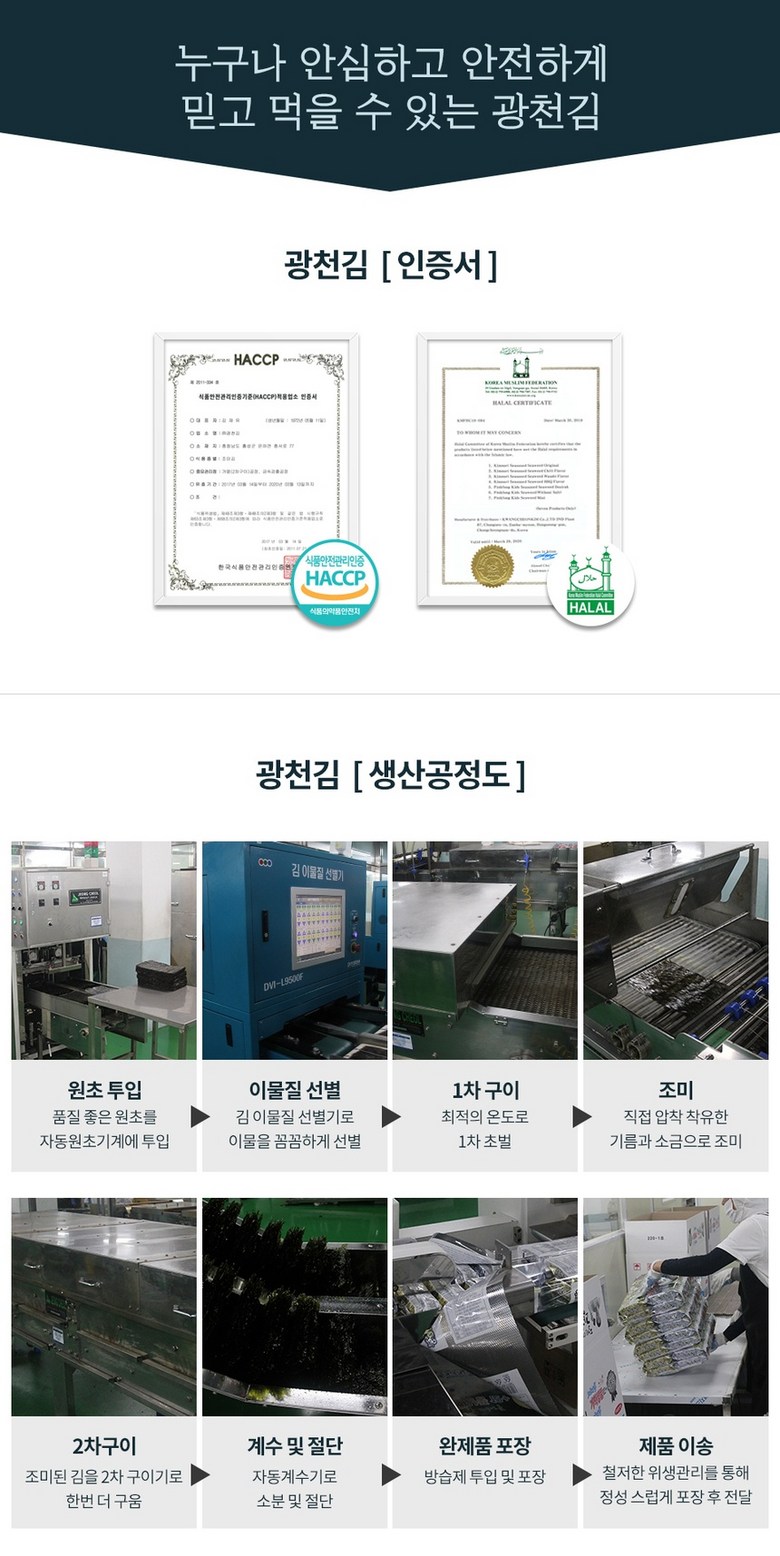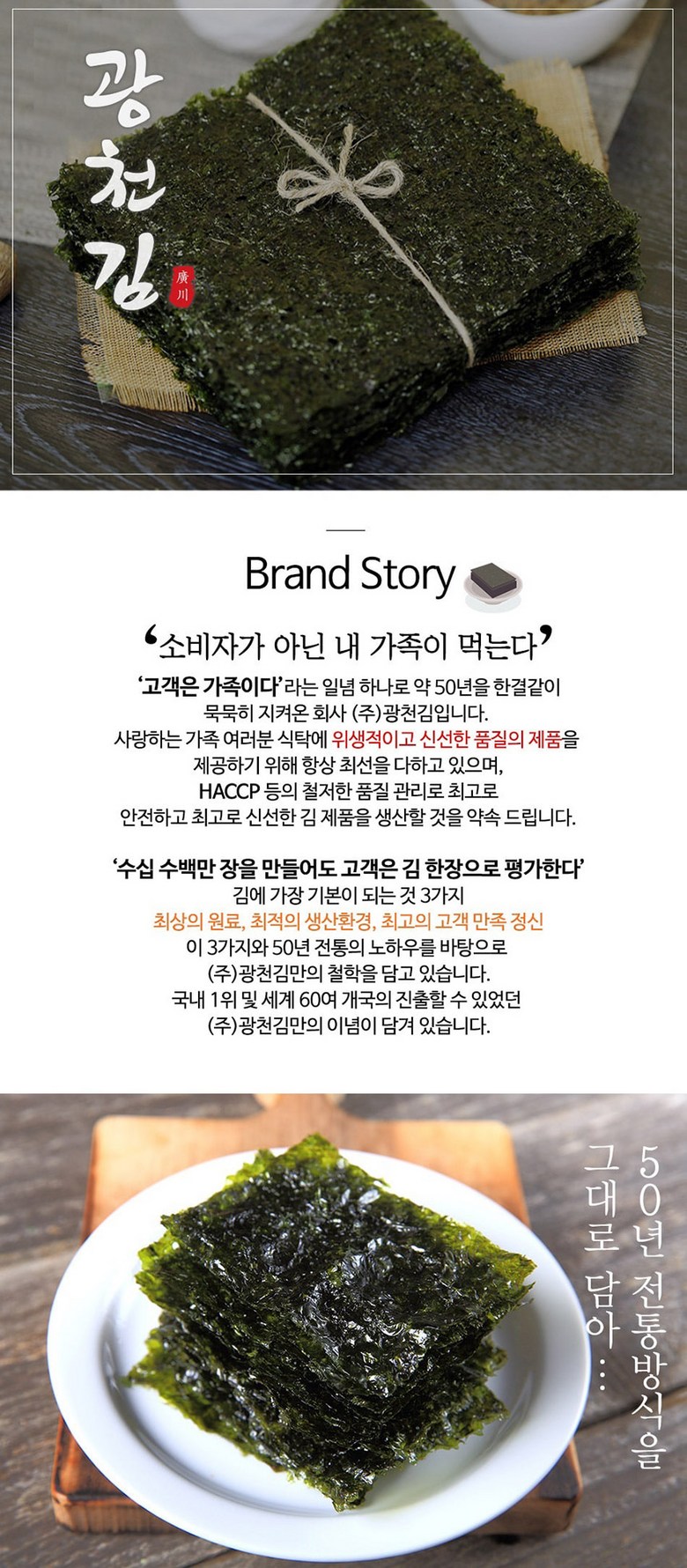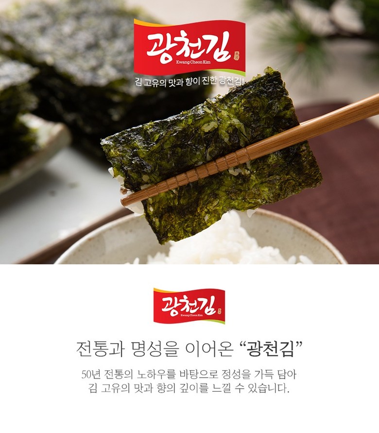 | 생산자(수입자) | (주)광천김 / 충남 홍성군 은하면 충서로 77 | 원산지 | 국내산 |