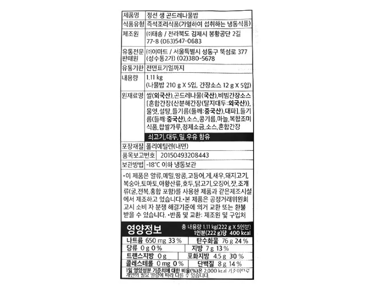 | 제품명 | 상품 상세페이지 참조 | 식품의 유형 | 상품 상세페이지 참조 |
