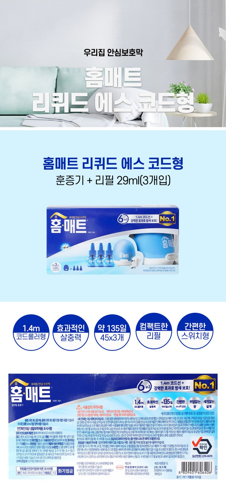제품구성 : 홈매트_리퀴드코드형훈증기+29ml(45일) x 3개입