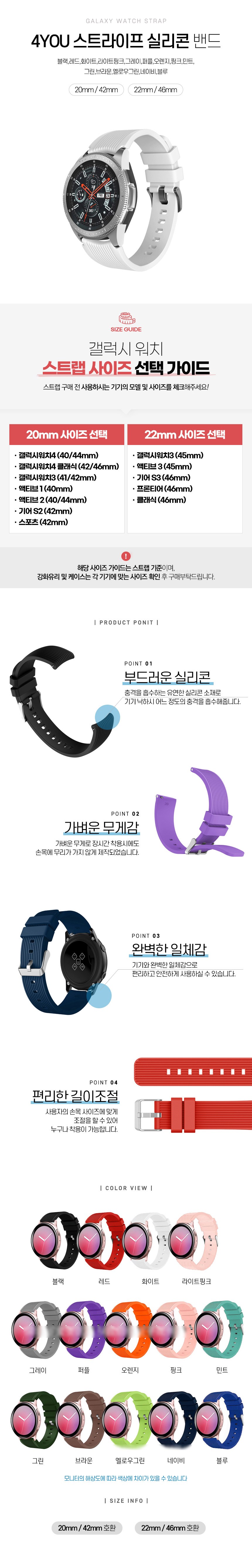 | 품명 및 모델명 | 4YOU 갤럭시워치 스트랩 시계줄 스트라이프 실리콘스트랩밴드, 20mm/42mm, 그레이 | 인증/허가 사항 | 해당없음 |