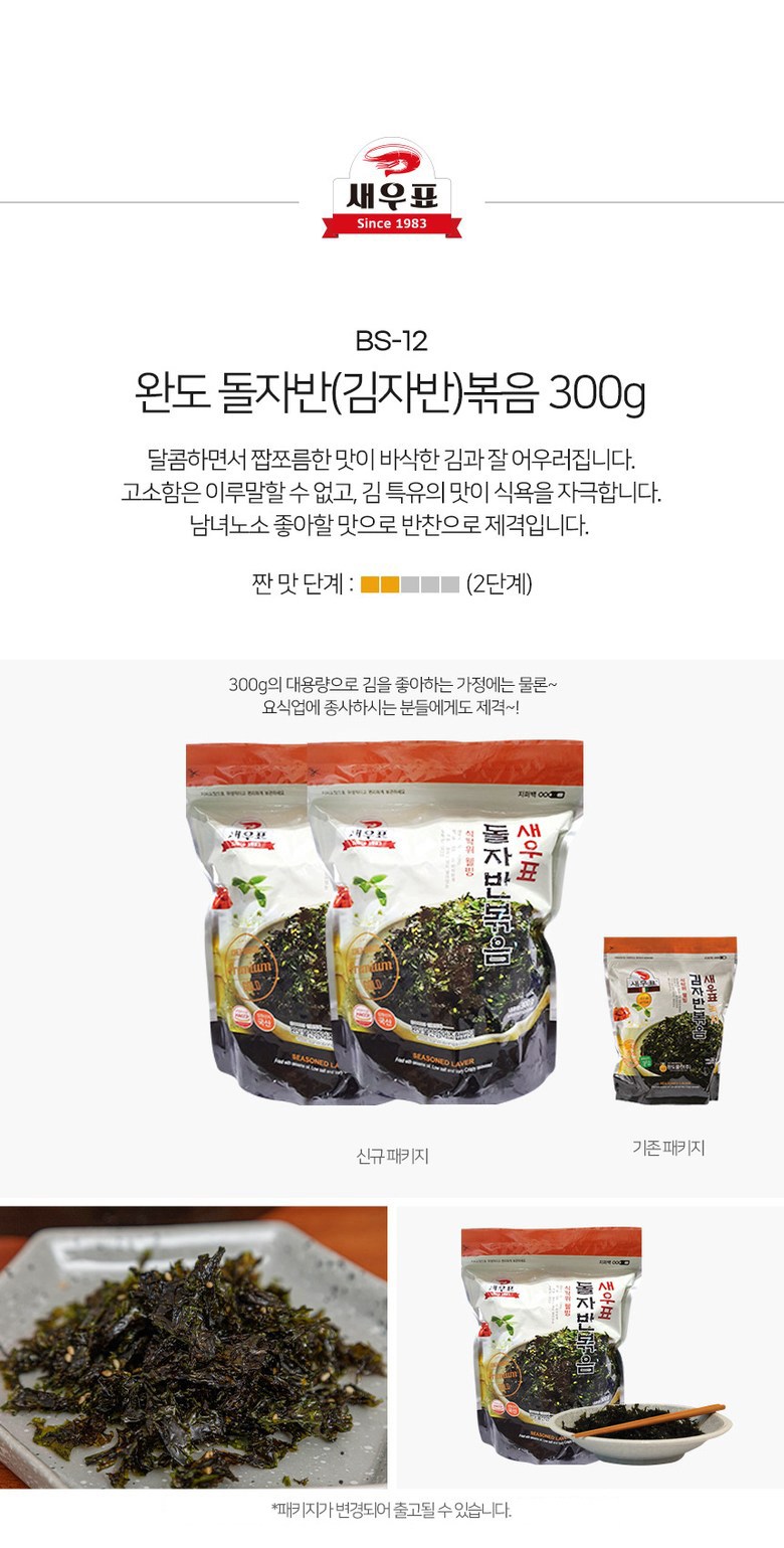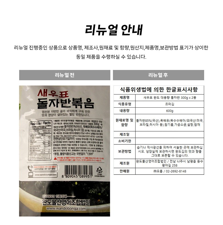 | 제품명 | 새우표 완도 대용량 돌자반 | 식품의 유형 | 조미김 |