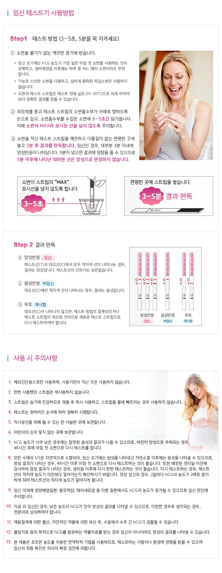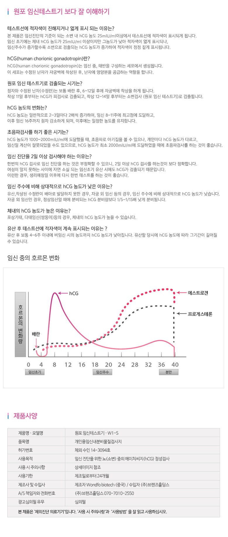 | 품명 및 모델명 | 개인용임신내분비물질검사지 / W1-S | 허가∙인증∙신고번호 (의료기기법에 따른 허가∙인증∙신고 대상 의료기기에 한함) | 체외 수인 14-3094 호 |