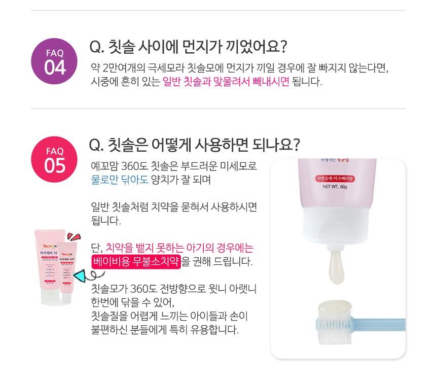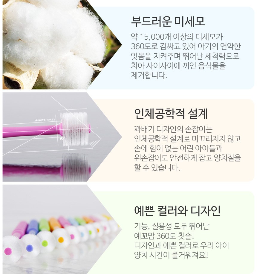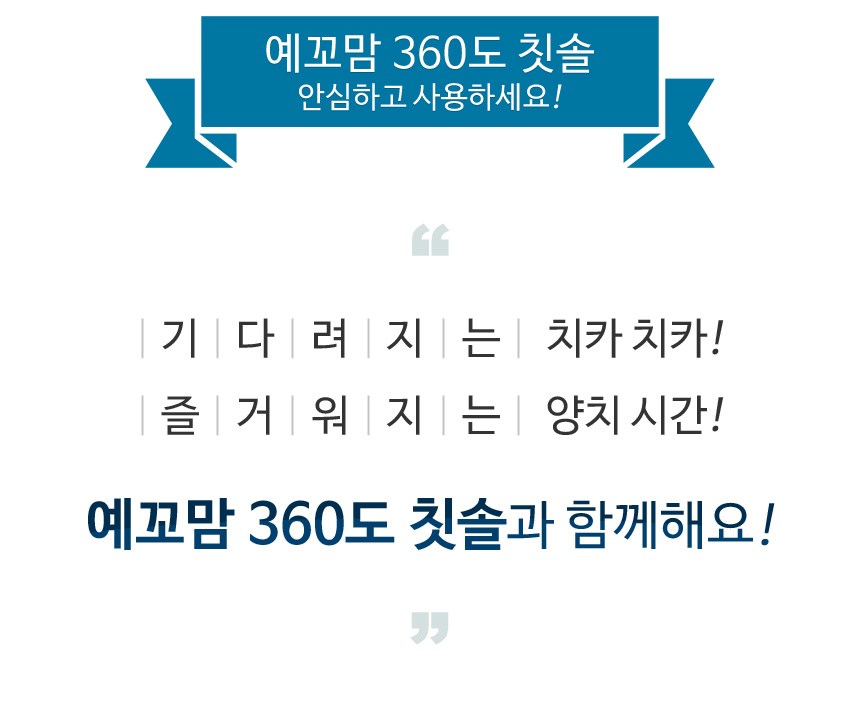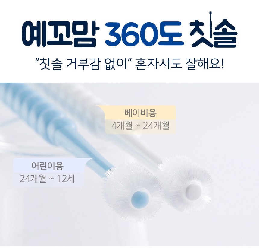 | 품명 및 모델명 | 예꼬맘 360도 2단계 유아 칫솔 | KC 인증정보 | 유/KC마크 |