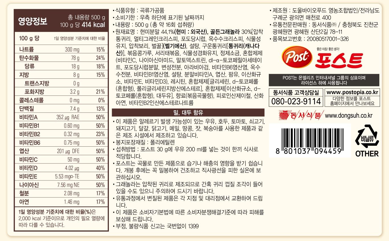 | 제품명 | 포스트 현미 그래놀라 | 식품의 유형 | 컨텐츠 참조 |