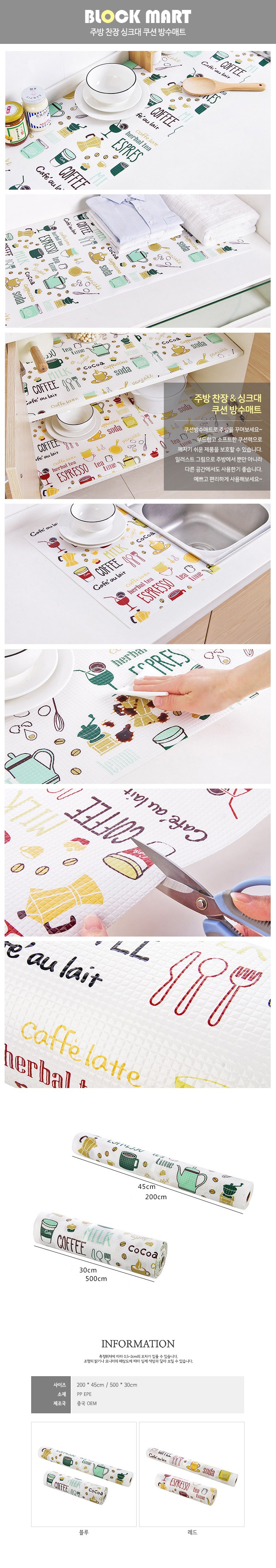 | 품명 및 모델명 | 블럭마트 주방 찬장 싱크대 쿠션매트 방수매트 블루200cm*45cm | 재질 | 컨텐츠 참조 |