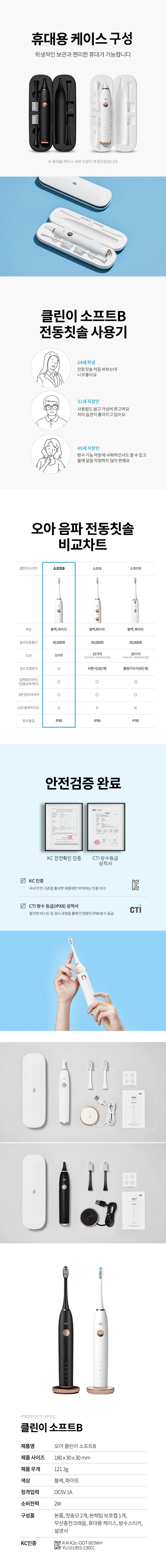 | 품명 및 모델명 | 오아 클린이 소프트B 자동 압력센서 음파 전동 칫솔 / OOT-003WH | KC 인증정보 | 본품: R-R-K2c-OOT-003WH / 배터리: YU101903-23001 |