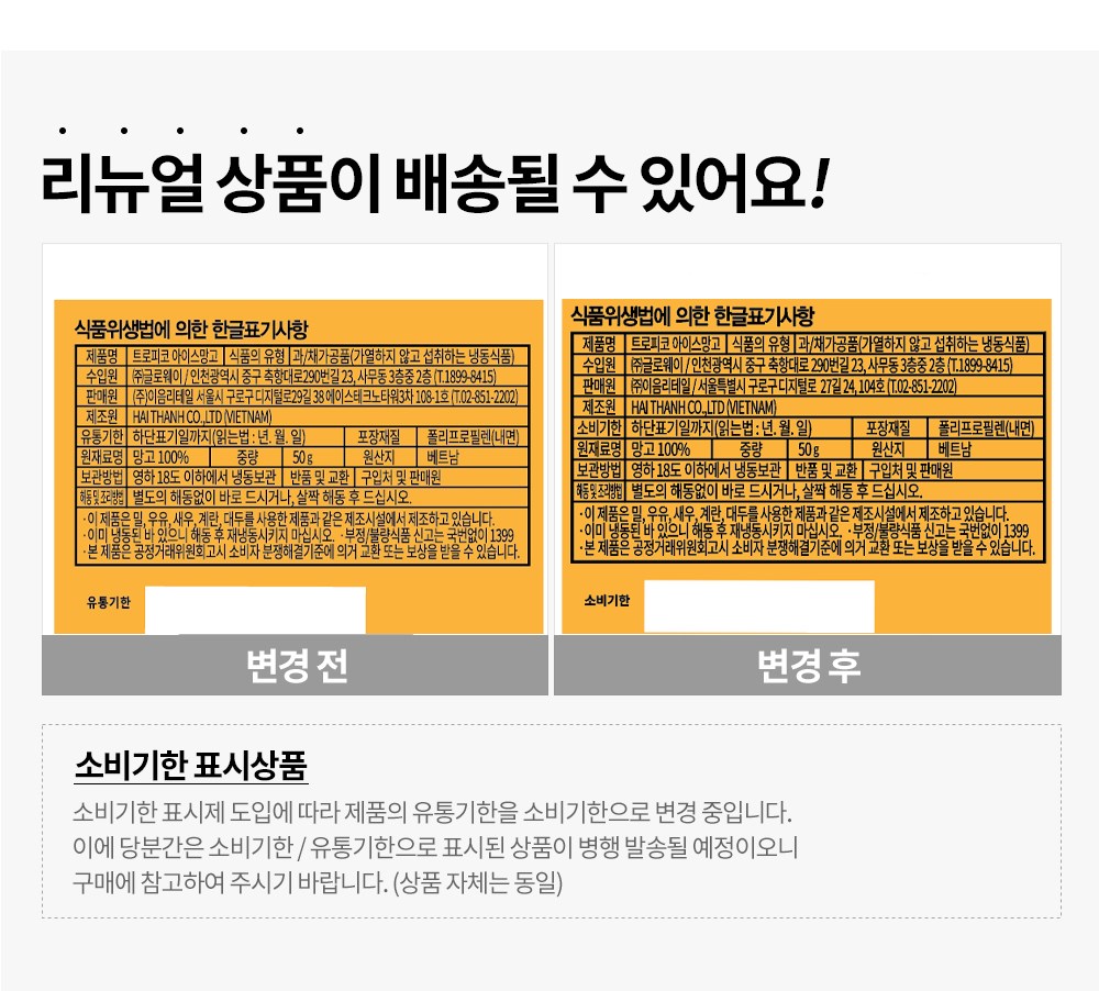 다만, 판매자의 제시사항이 관계법령보다 소비자에게 유리한 경우에는 판매자 제시사항이 적용됩니다.