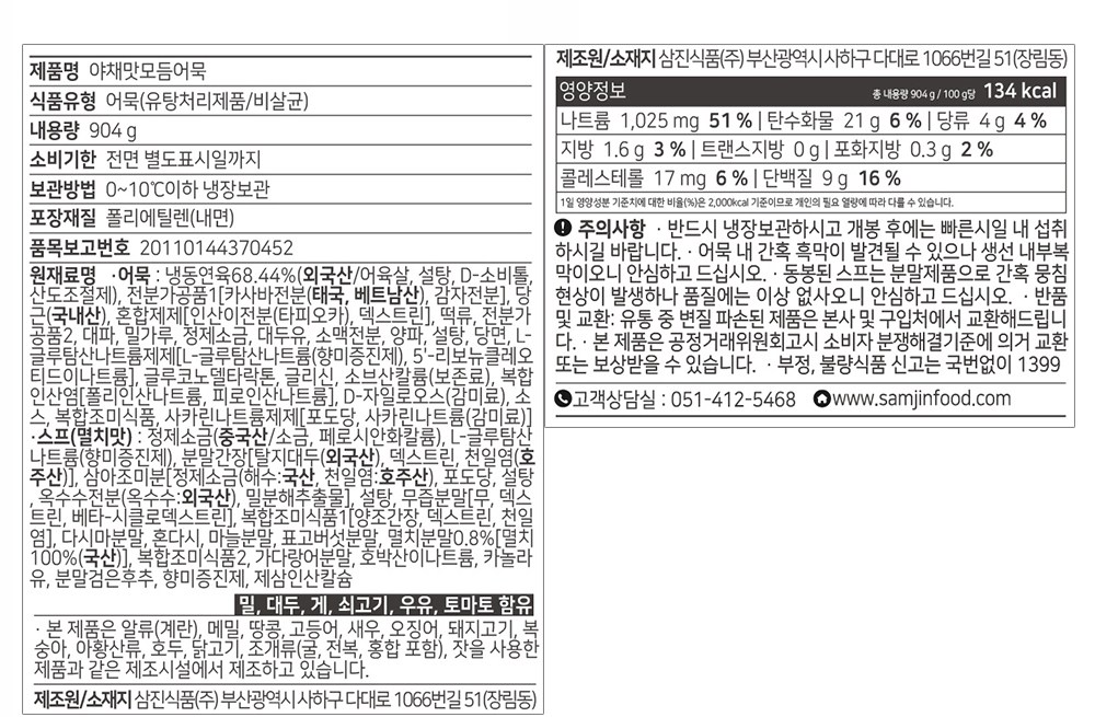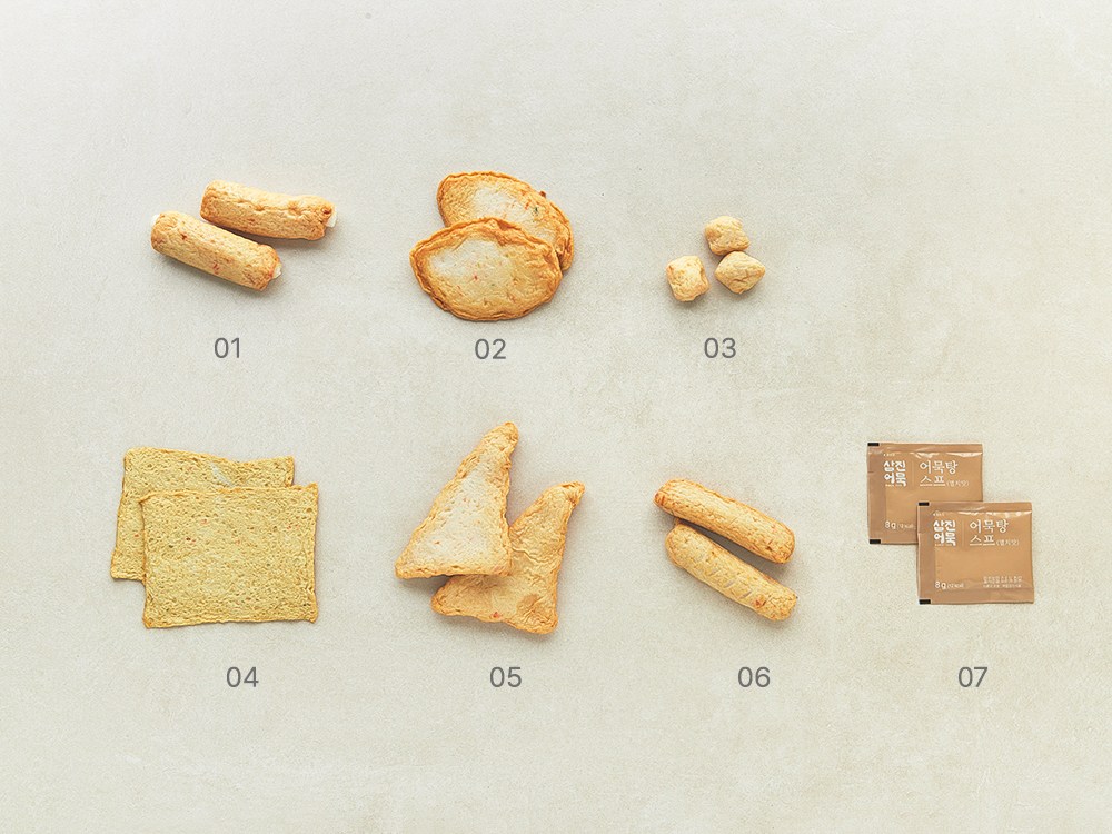 - 구성품: 맛살핫바어묵, 볼어묵, 삼각당면어묵, 떡말이, 빈대떡어묵, 야채말이어묵, 특낙엽어묵, 야채낙엽어묵, 야채소각어묵