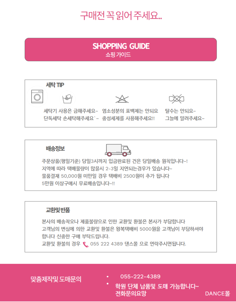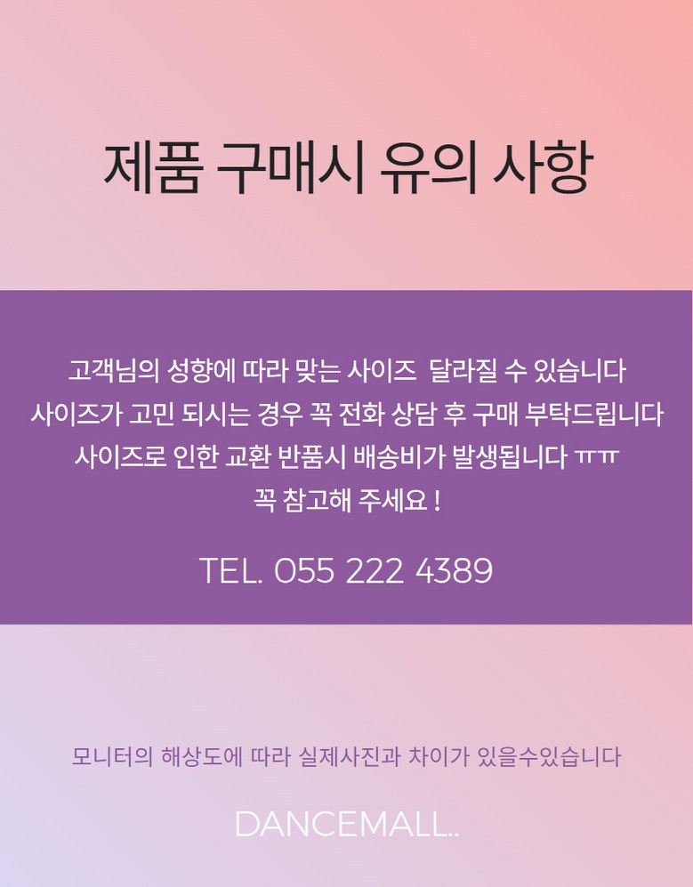 - ㆍ모니터 해상도의 차이로 인해 색상이나 이미지가 실제와 달라, 고객이 단순 변심으로 교환/반품을 무료로 요청하는 경우