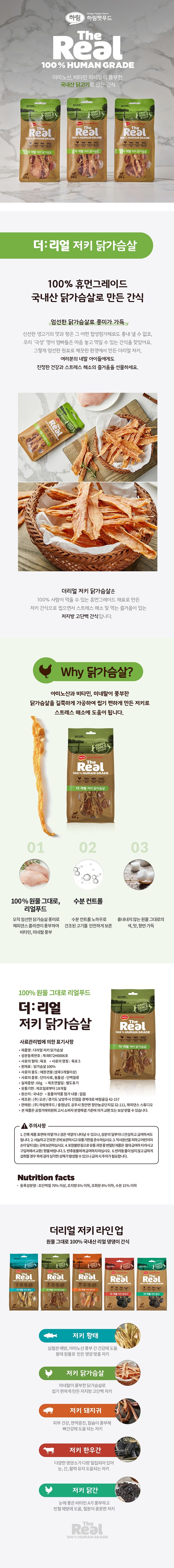 | 품명 및 모델명 | 더리얼 저키 닭가슴살 | 인증/허가 사항 | 사료관리법에 따른 성분등록번호 : 컨텐츠 참조 |