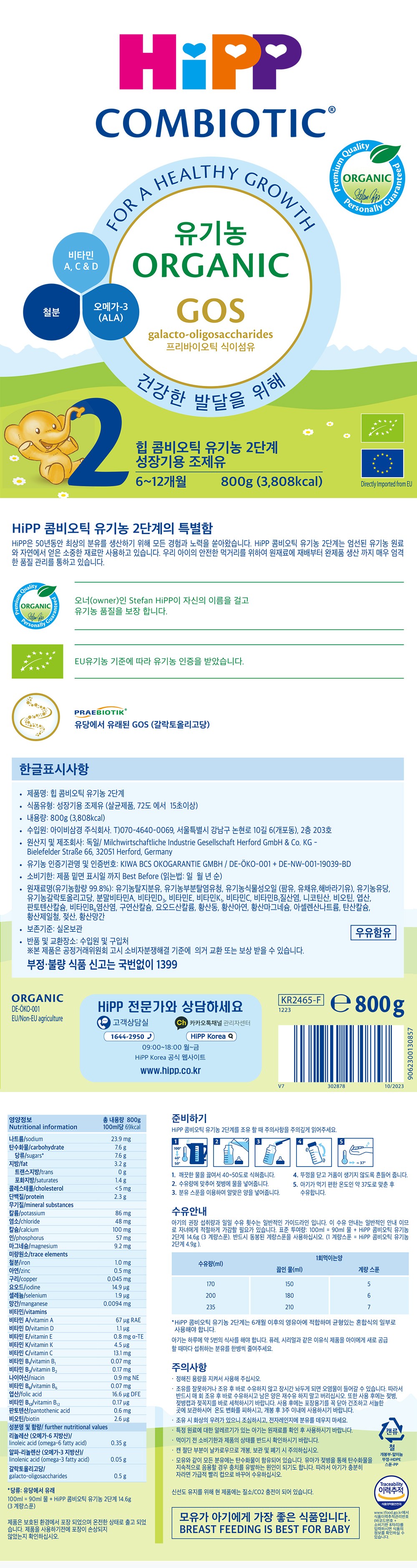 | 포장단위별 내용물의 용량(중량), 수량 | 800g X 3개 | 원재료명 및 함량 | 컨텐츠참조 |