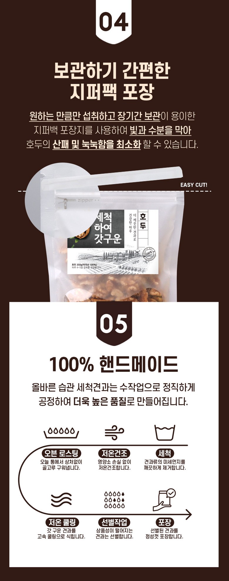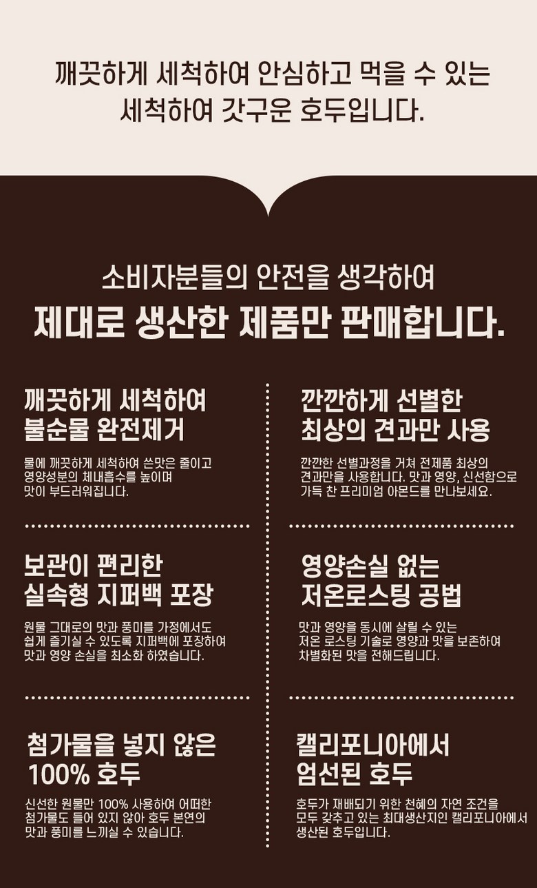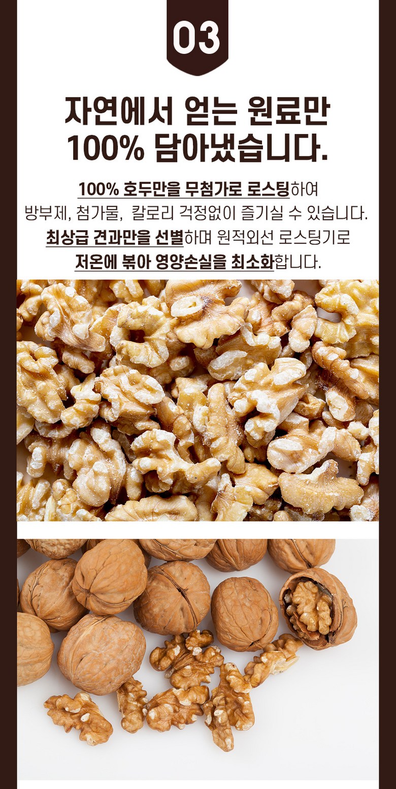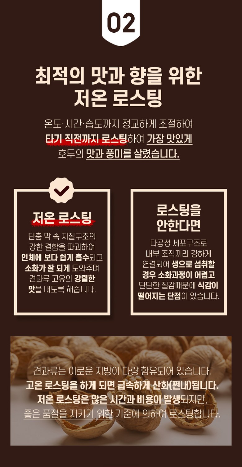 호두 고유의 맛과 영양을 잘 살려주는 차별화된 로스팅 기술로