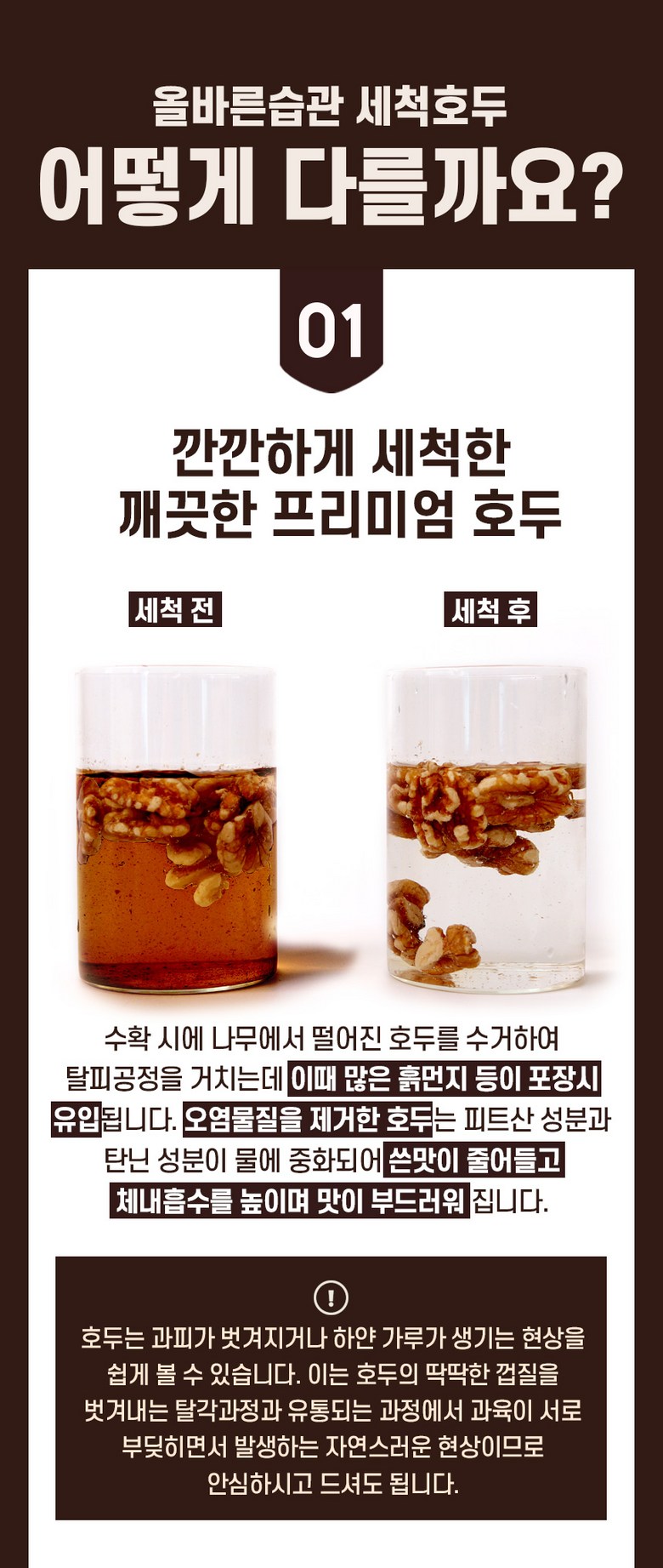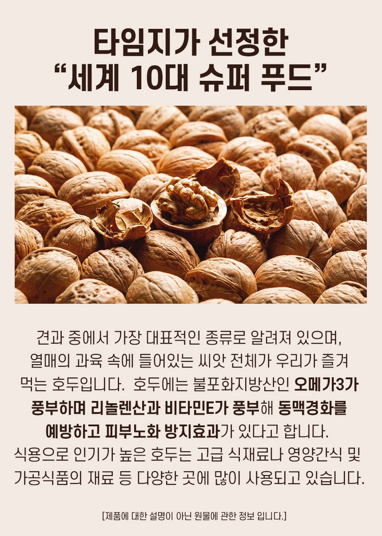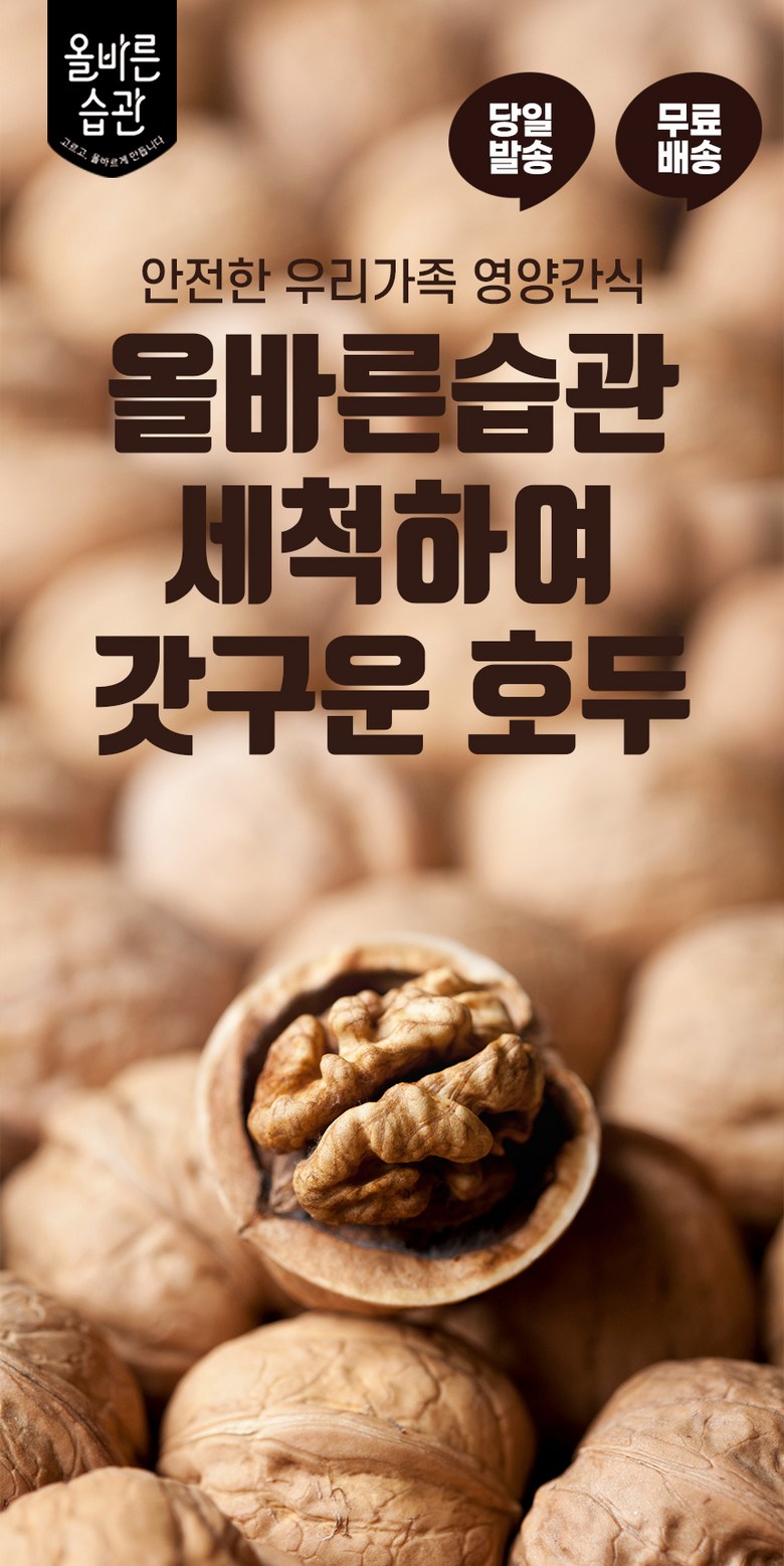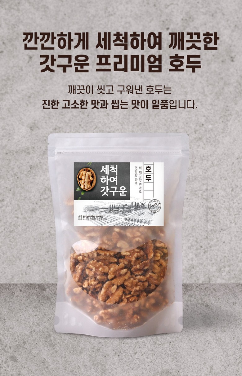 세척하여 갓구운 호두로 최상의 원물이 가진