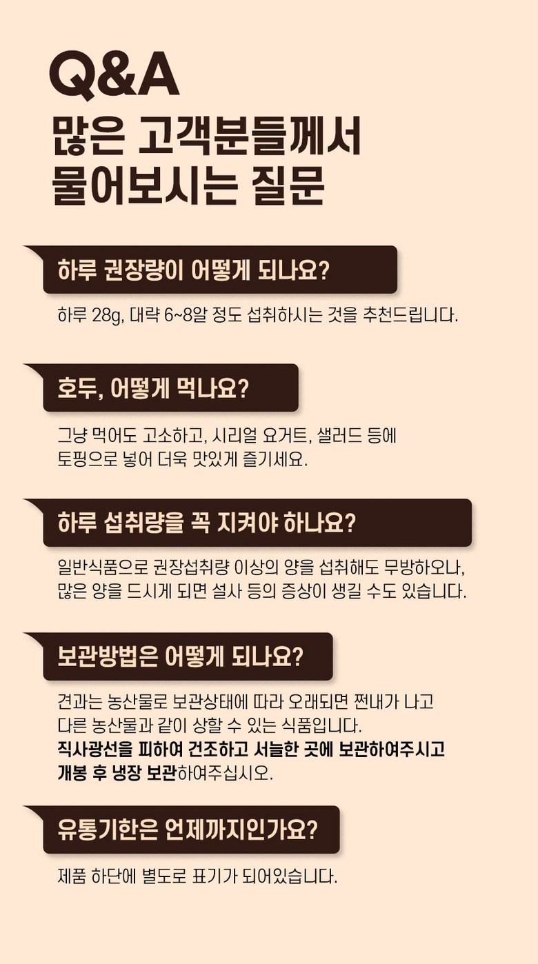 | 제품명 | 세척하여 갓구운 호두 | 식품의 유형 | 땅콩 또는 견과류가공품 |