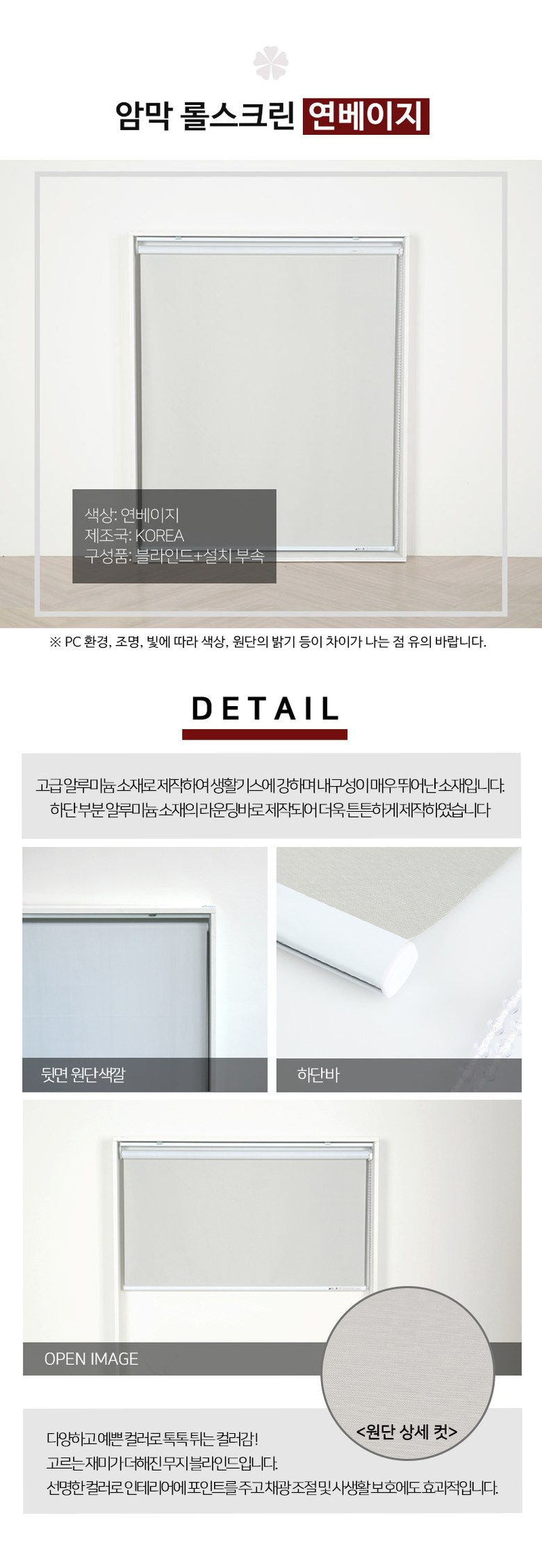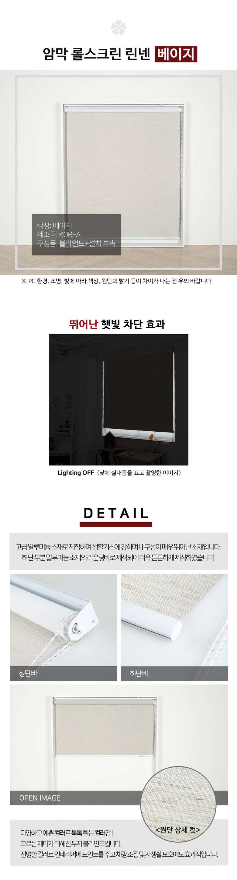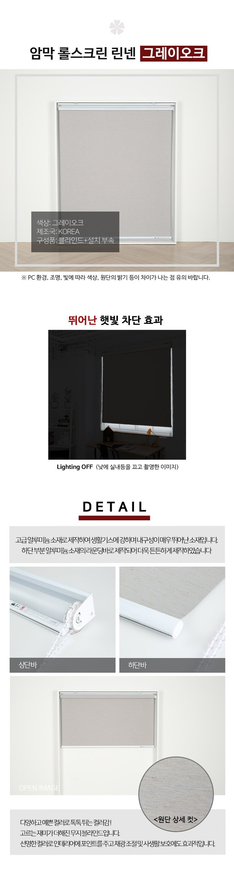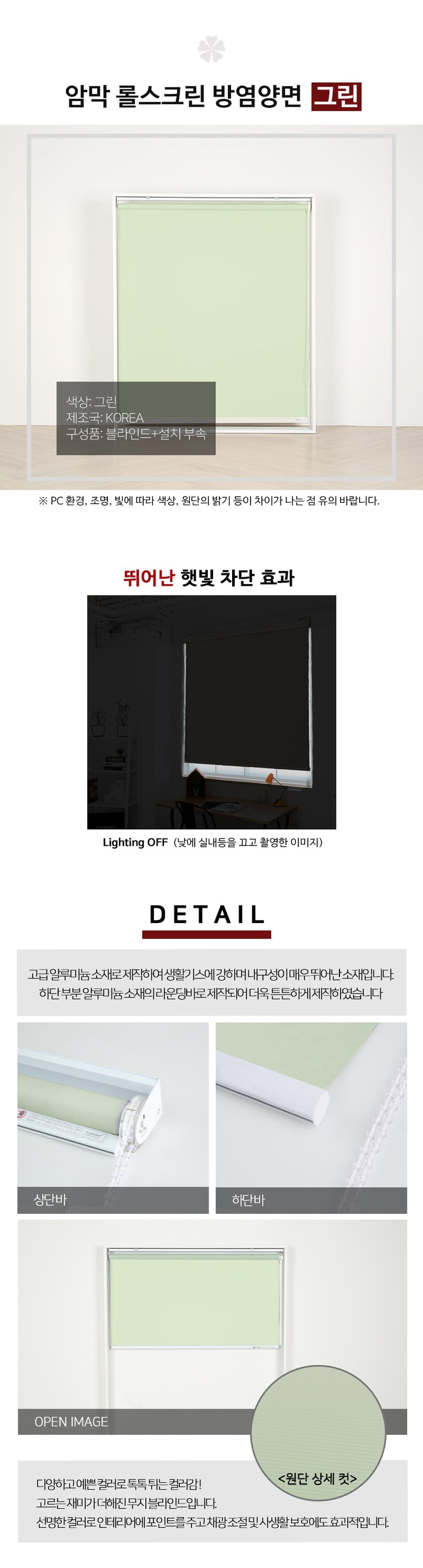 | 제조자(수입자) | 빛고운창 | 제조국 | 대한민국 |