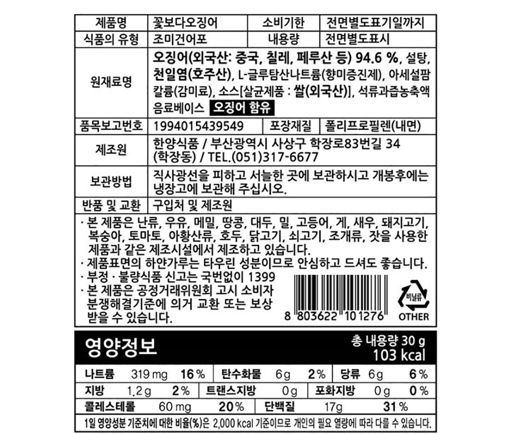 ※ 마른 오징어 특성상 식감이 질기거나 딱딱하게 느껴질 수 있습니다. 과다 섭취 시 무리가 갈 수 있으니 주의해주세요.