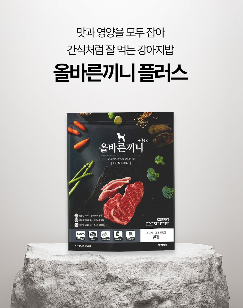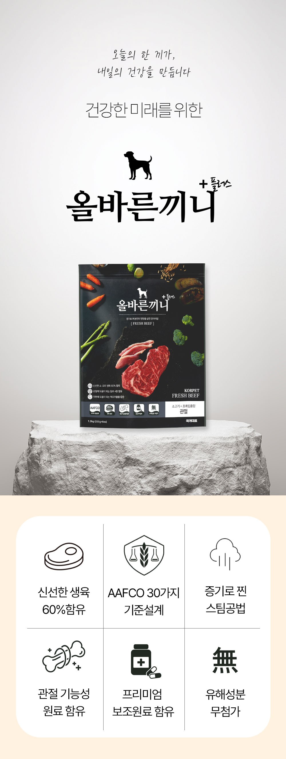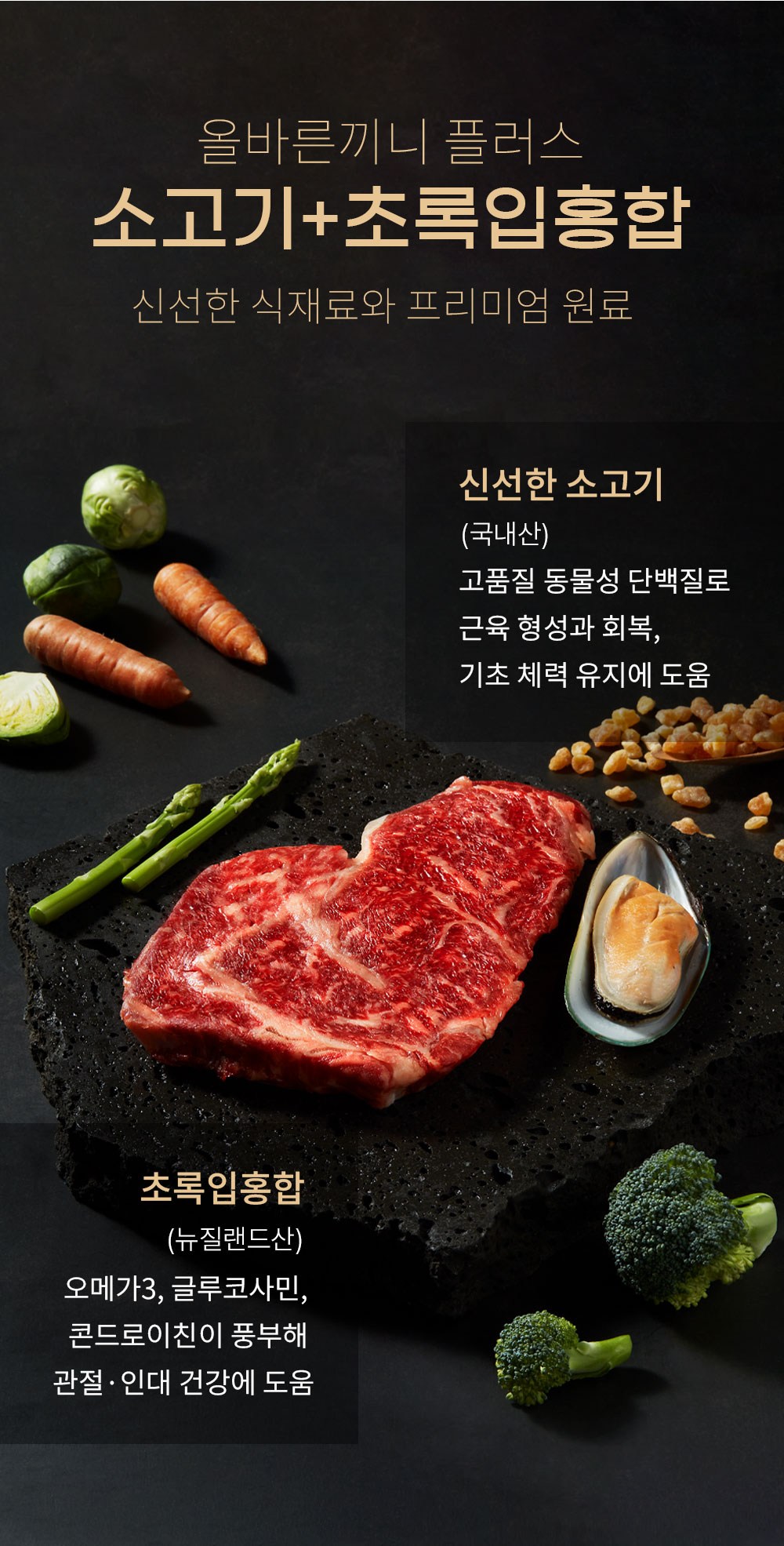 | 품명 및 모델명 | 올바른끼니 플러스 소고기 초록잎홍합 | 인증/허가 사항 | 사료관리법에 따른 성분등록번호 : 컨텐츠 참조 |