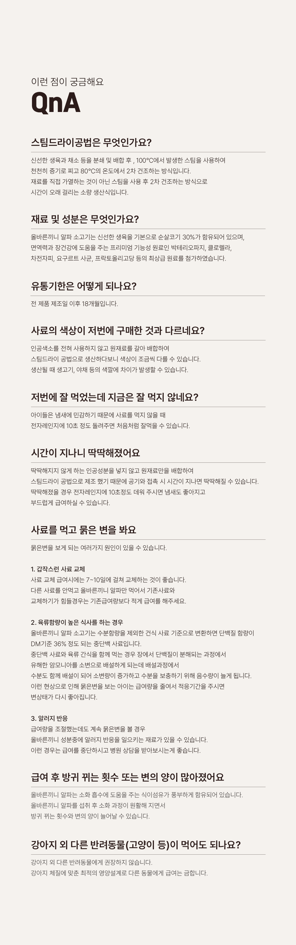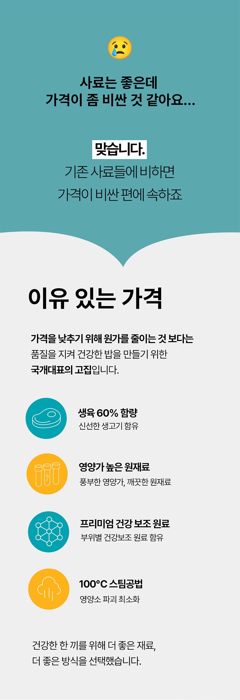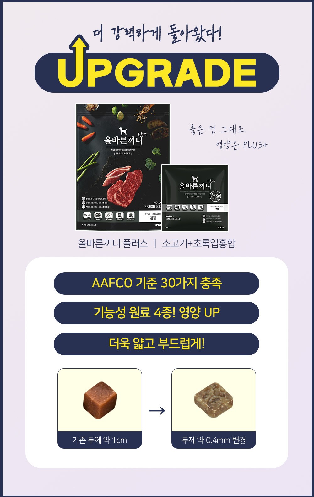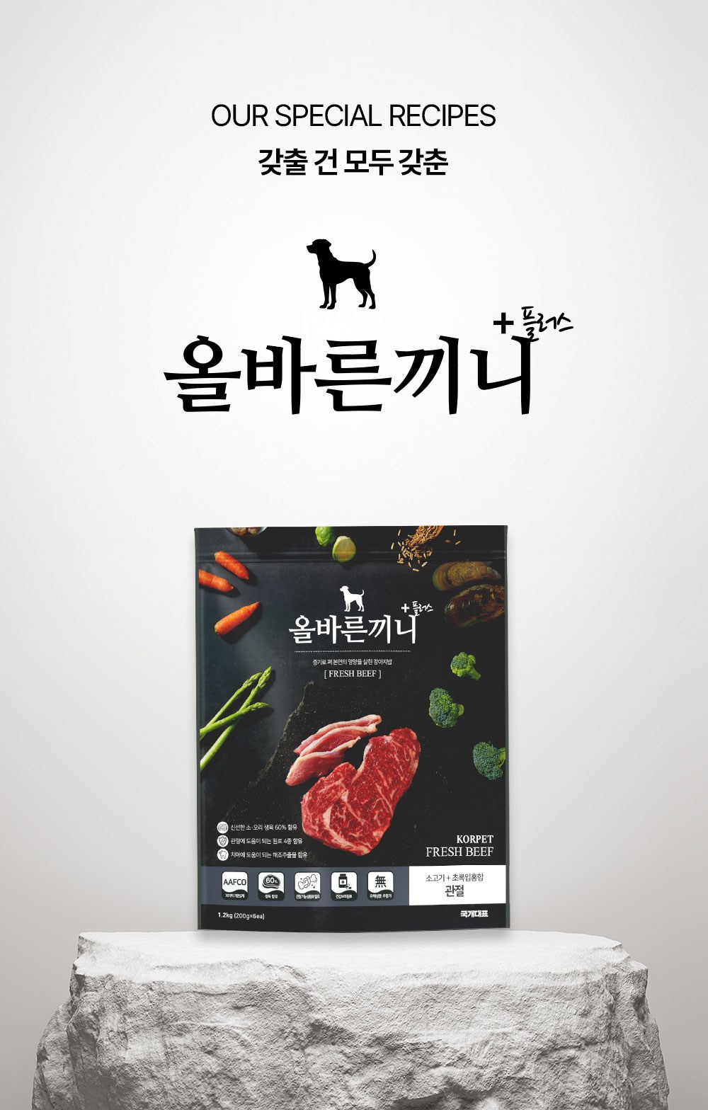 | 품명 및 모델명 | 올바른끼니 플러스 소고기 초록잎홍합 | 인증/허가 사항 | 사료관리법에 따른 성분등록번호 : 컨텐츠 참조 |