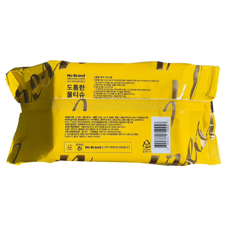 도톰한 물티슈 한장의 크키 약 190X135mm